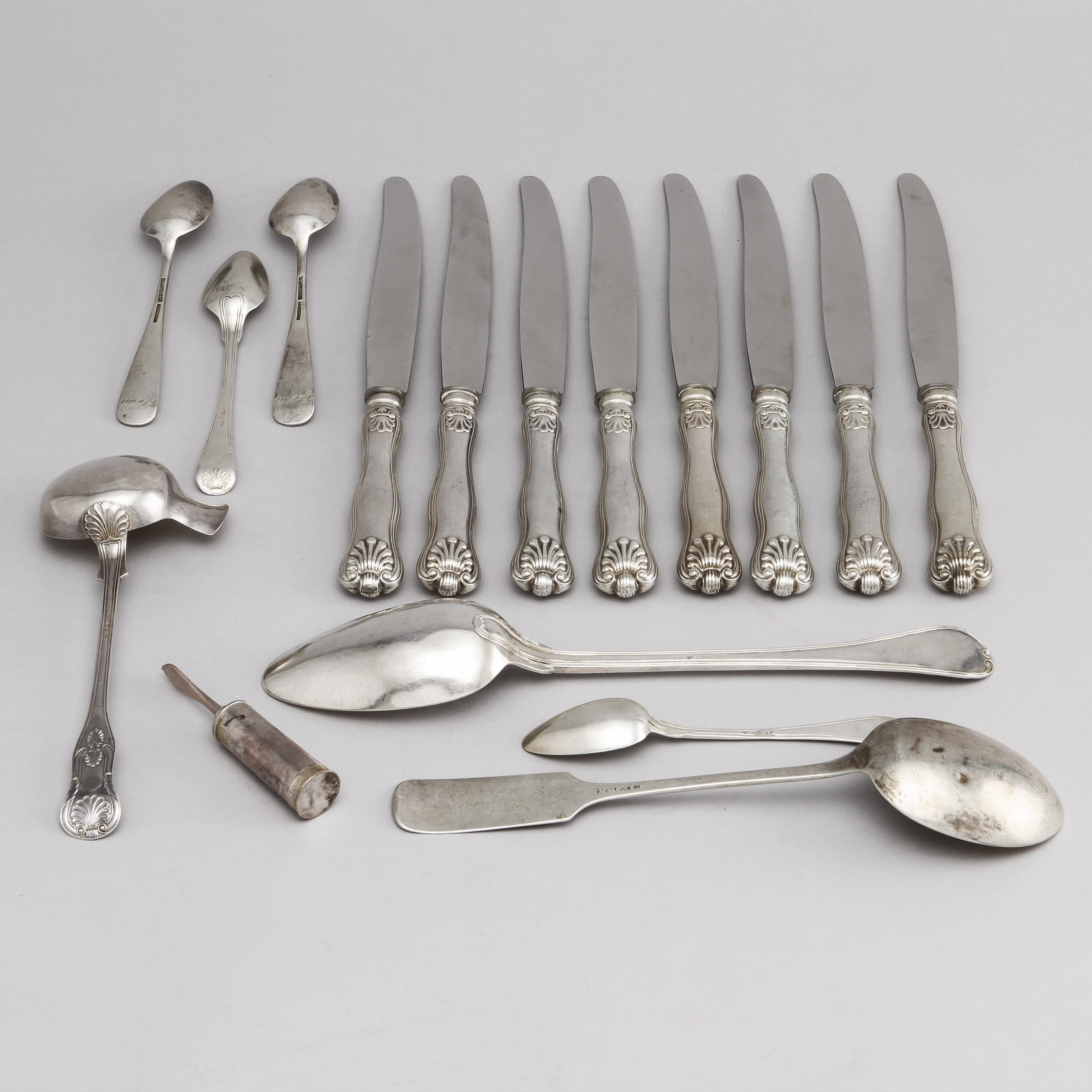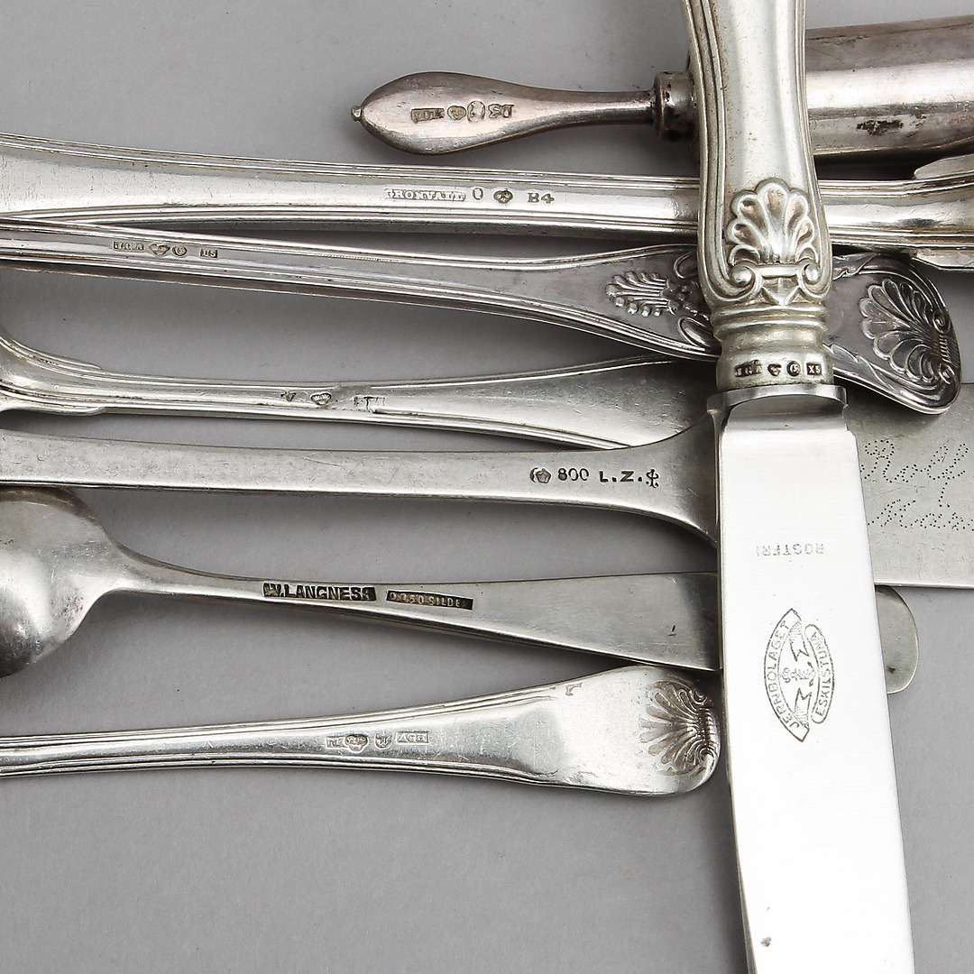 343468. SØLVOBJEKTER, 16 dele, totalvægt 980 gram.