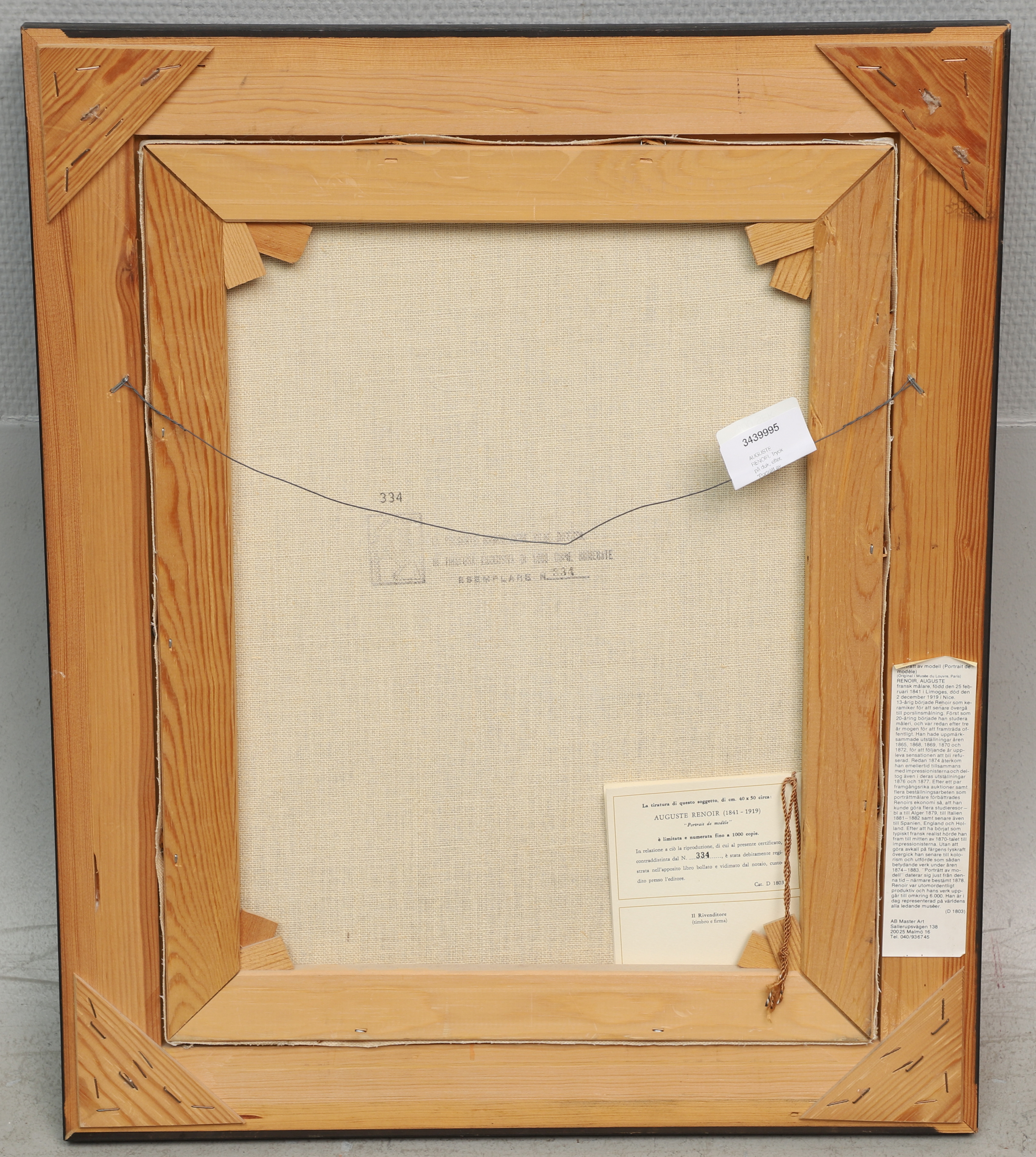 3439995. AUGUSTE RENOIR. Tryk på lærred, efter, „Portræt af model“, Master Art.