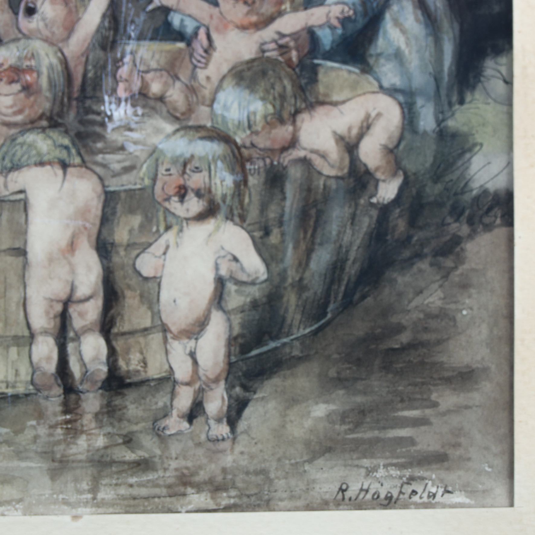 3440322. ROBERT HÖGFELDT. Badetroldeunger, akvarel.
