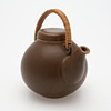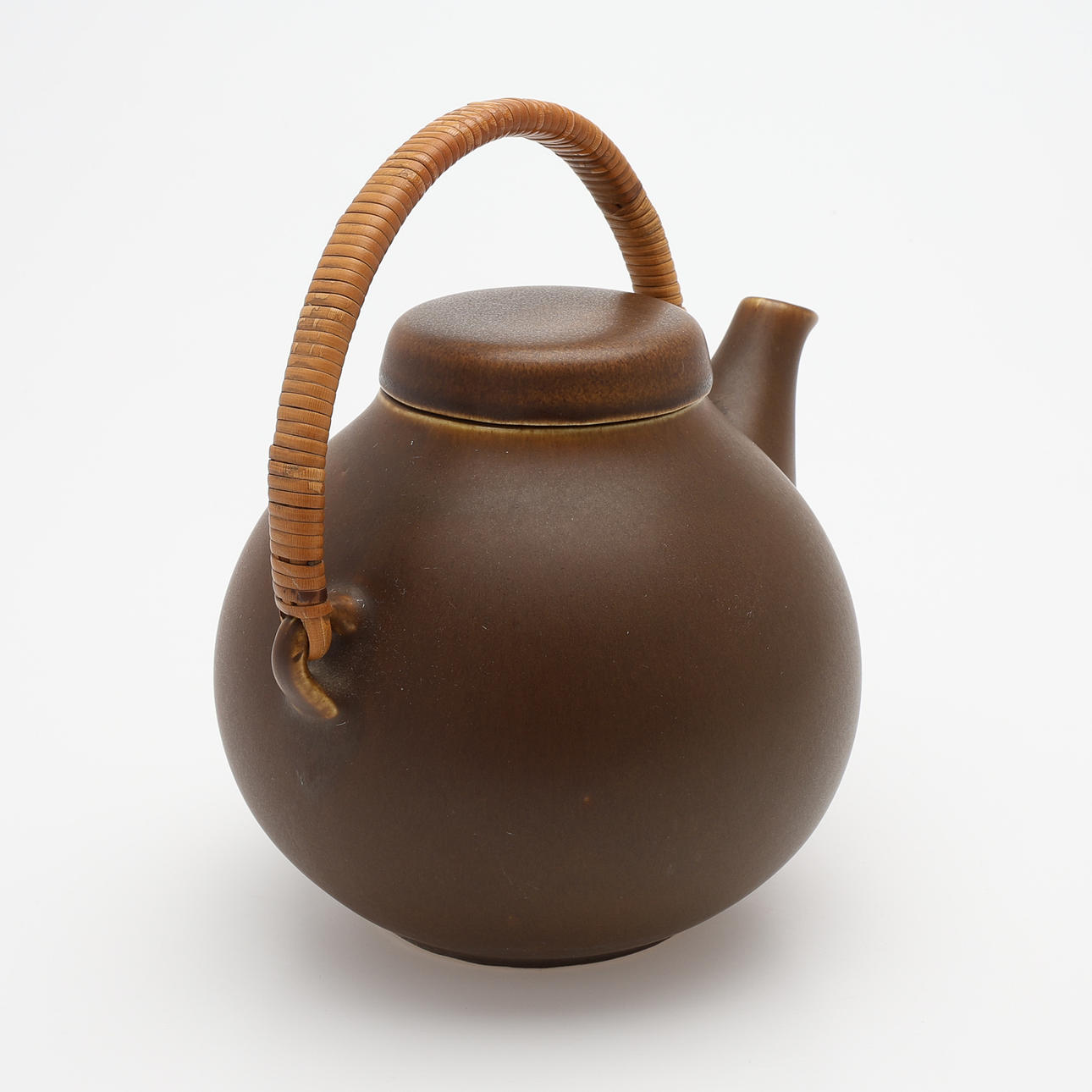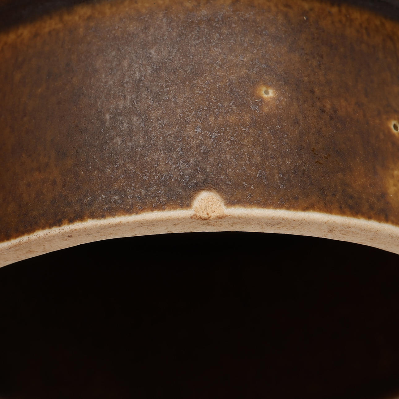 Stentøj, med brun glasur, skaft lavet af rotting, højde 15,5 cm.