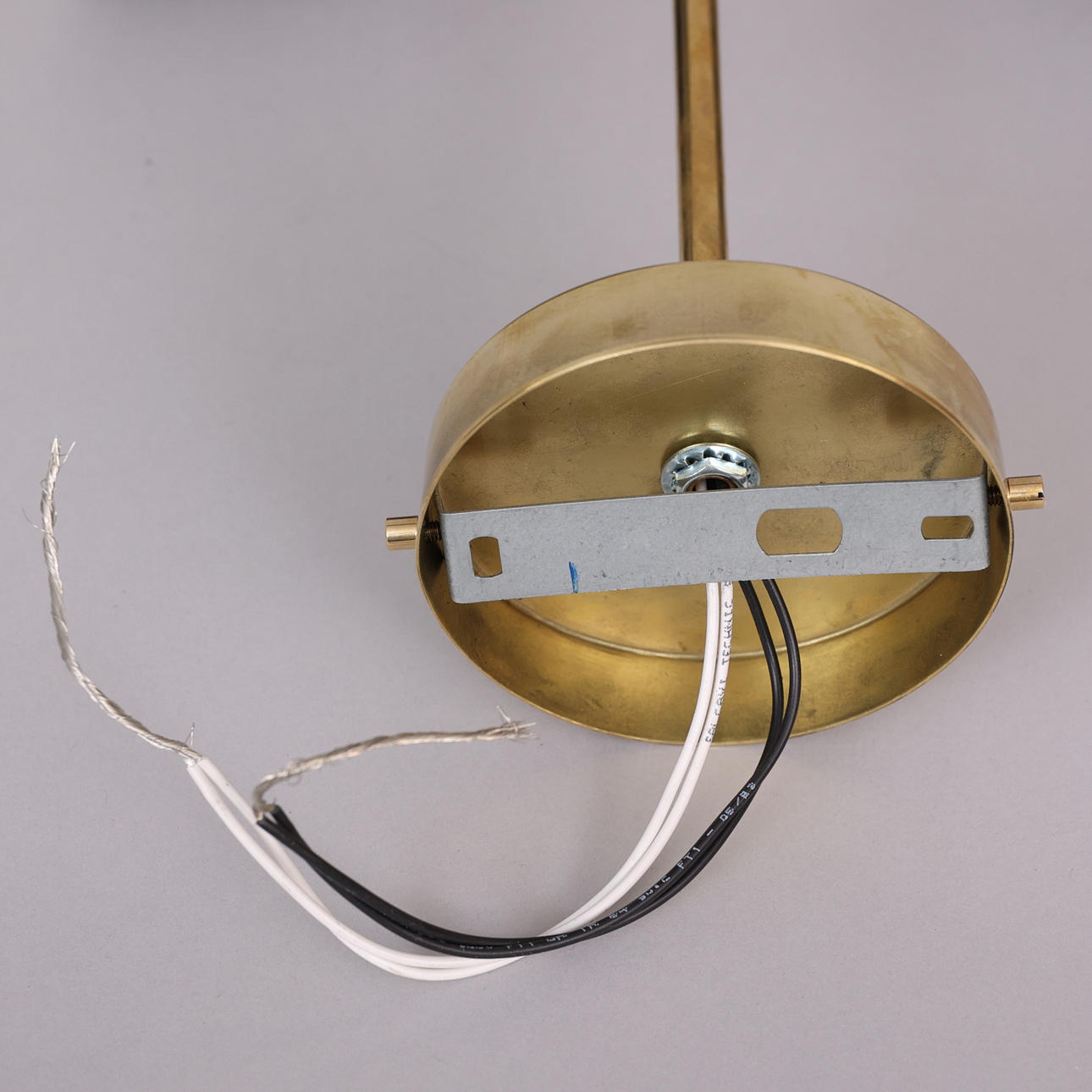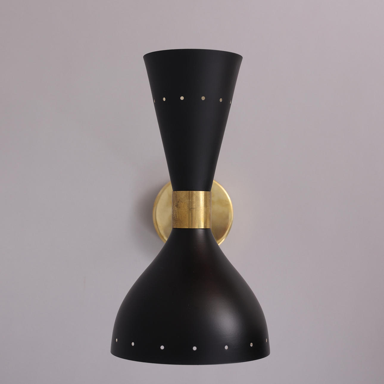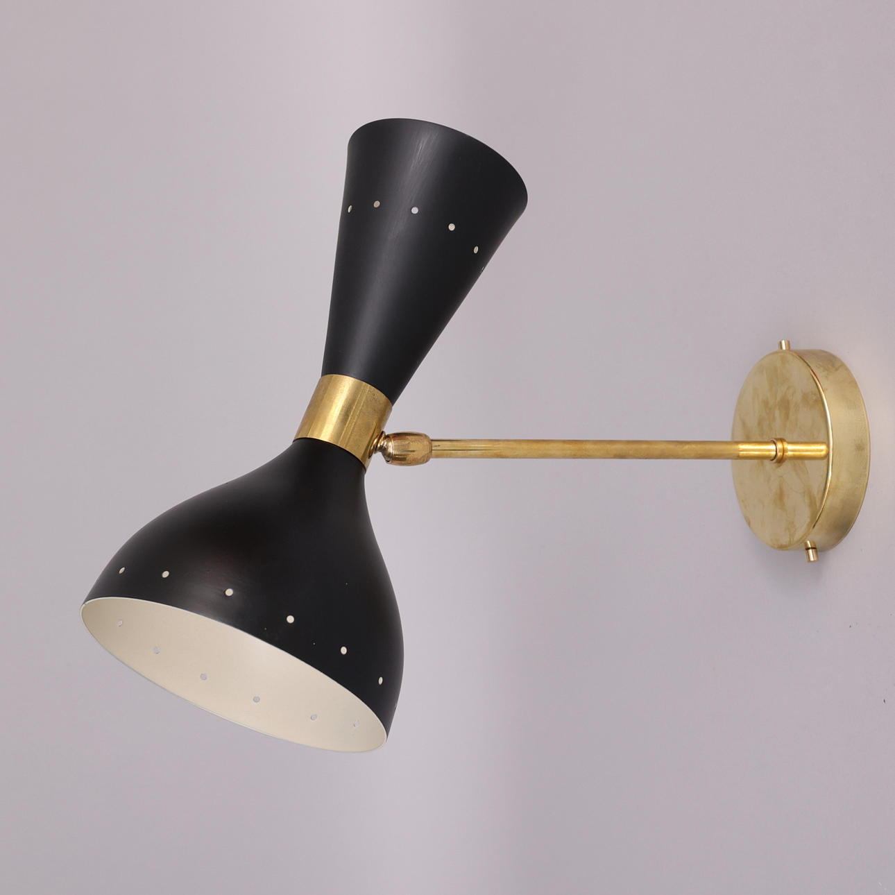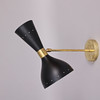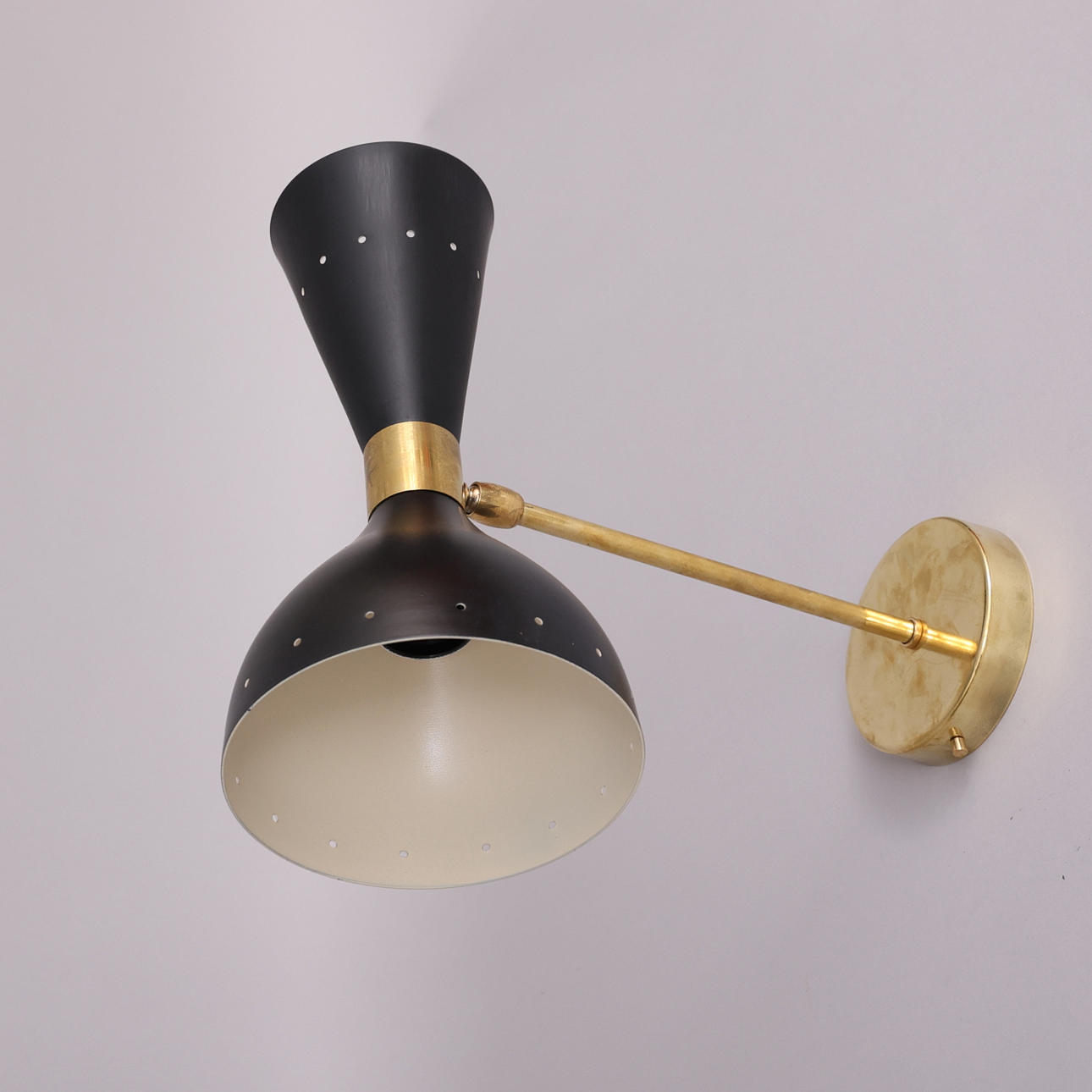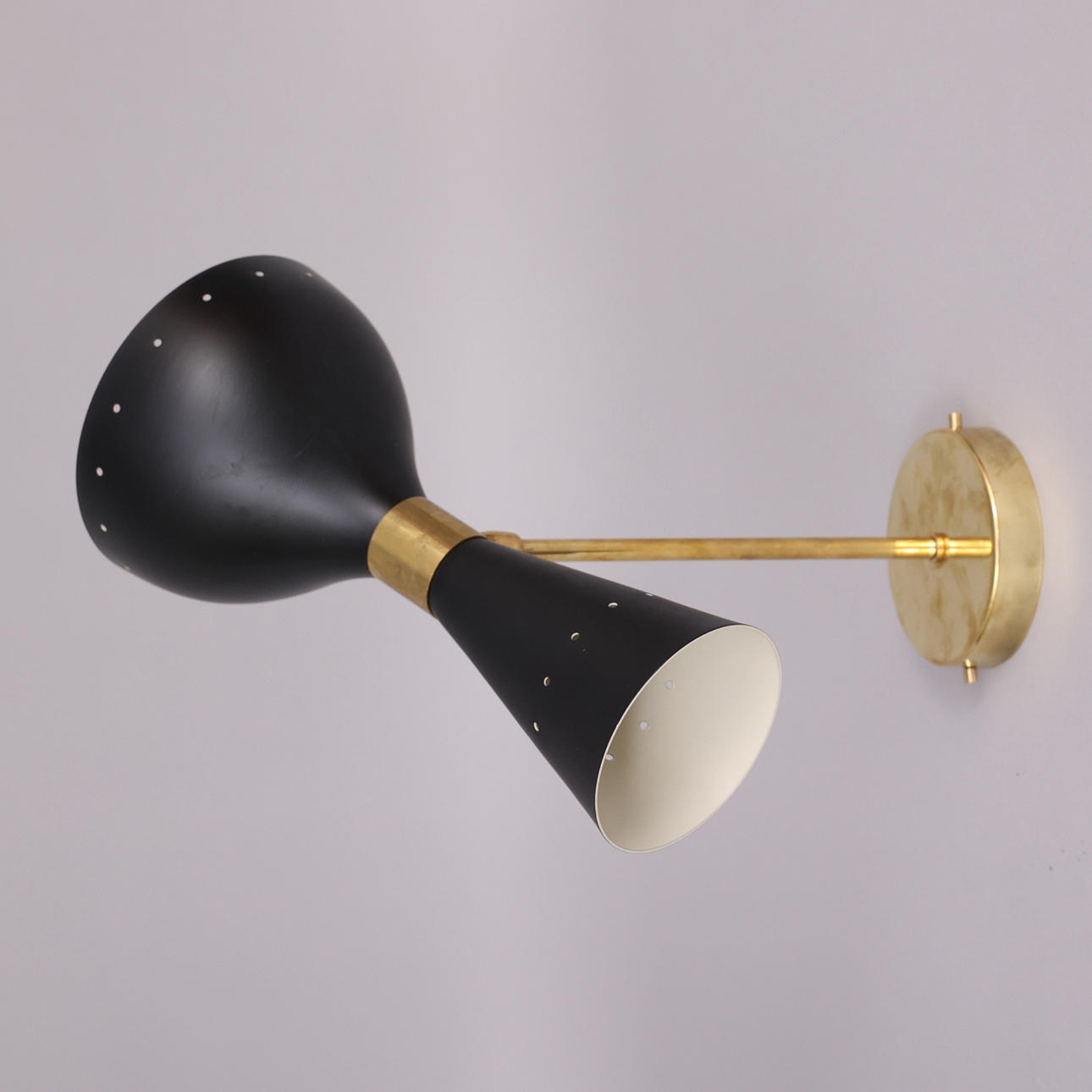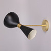 Ramme i patineret messing, malede metalskærme, dobbelte lyskilder, E14