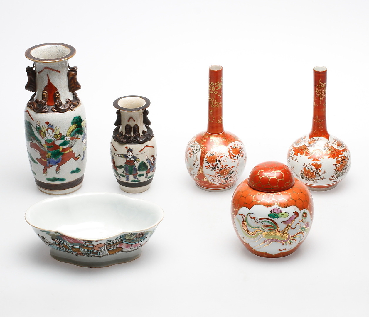 344585. ØSTINDISKE OBJEKTER, 6 stk, 19.-20. århundrede.