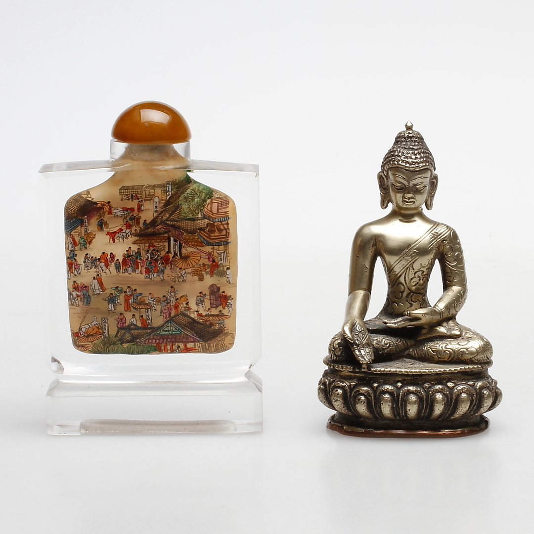 344650. SKULPTUR OG FLASKE, orientalsk.