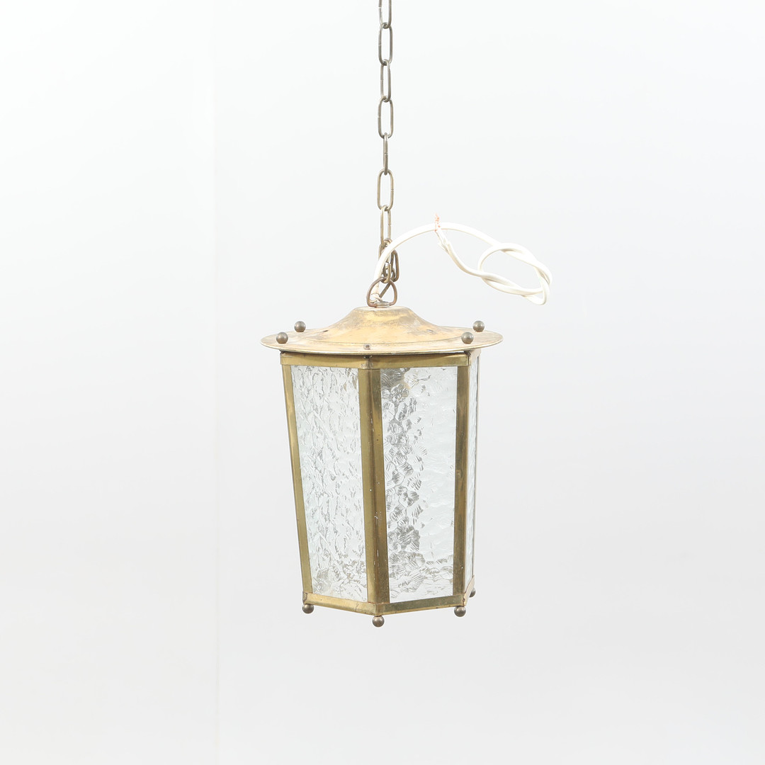 3448589. LOFT-/UDENDØRS LAMPE, MESSING/GLAS.