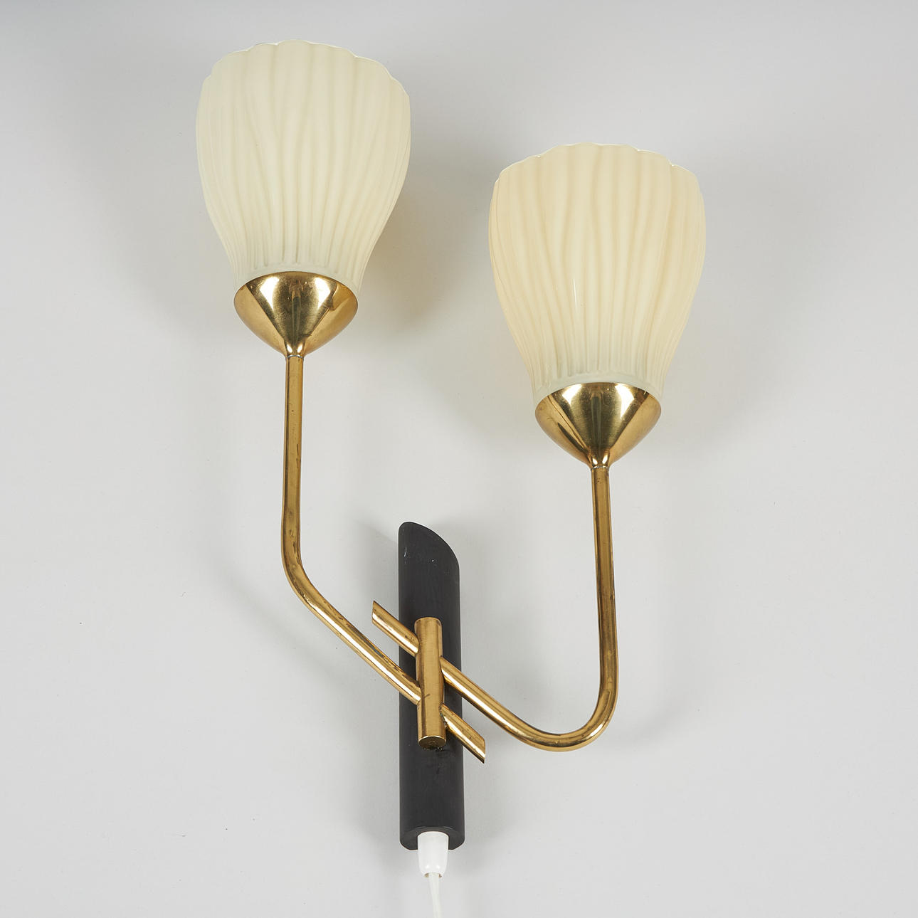 3452826. VÆGLAMPE, messing, malet metal, kopper i opalglas.