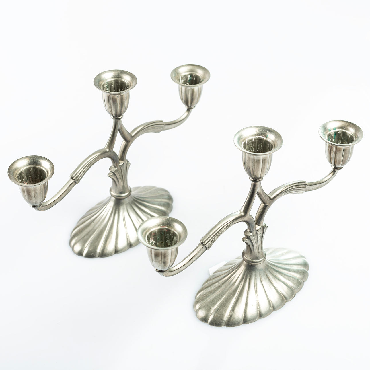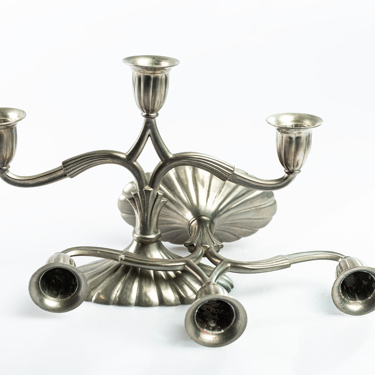 3454067. Et par lysestager i tin, Art Deco-stil.