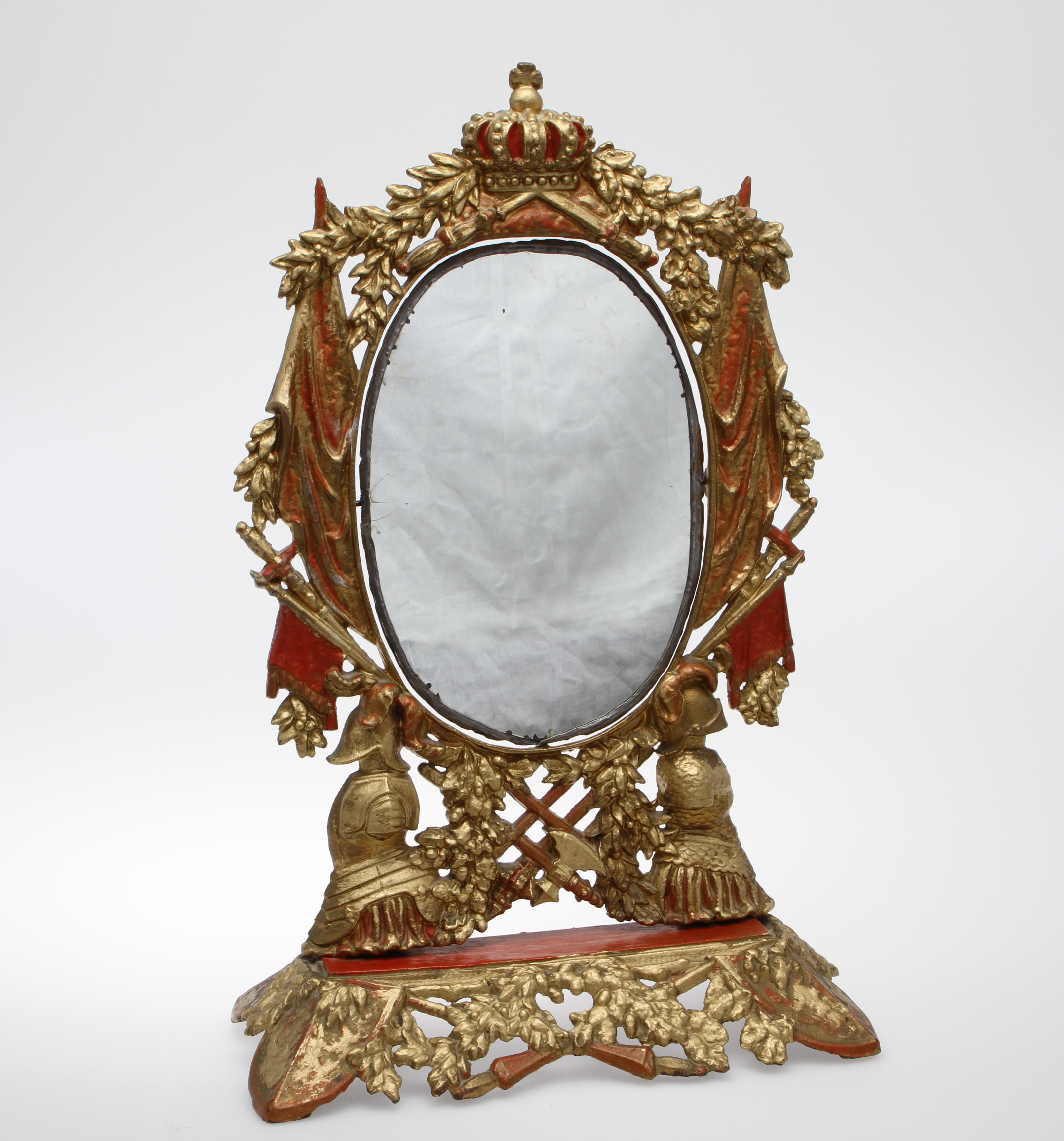 34551. BORDSPEJL, bronzeret støbejern, omkring 1900.