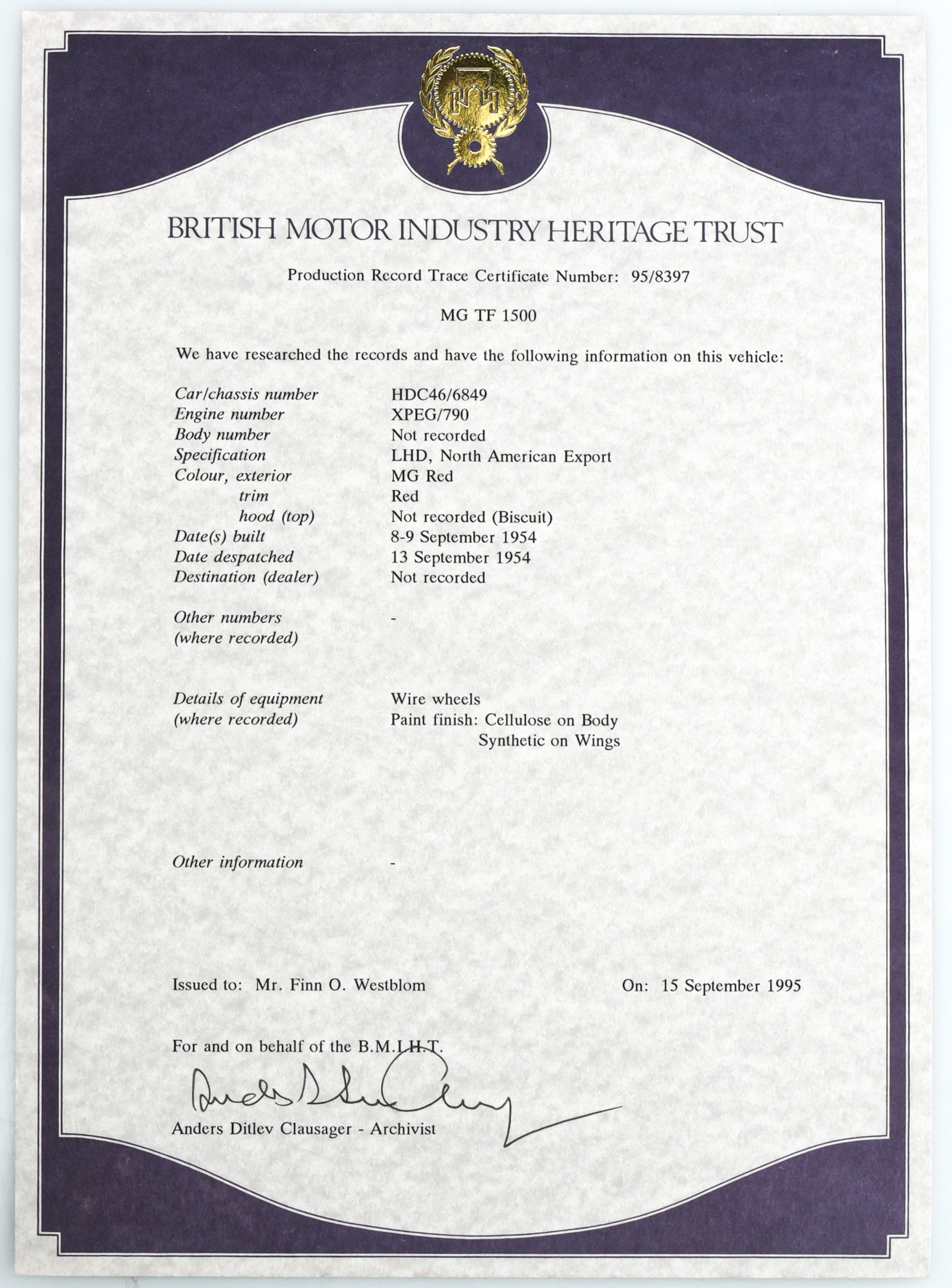 3458425. MG, TF Roadster 1500, 1955 modelår.