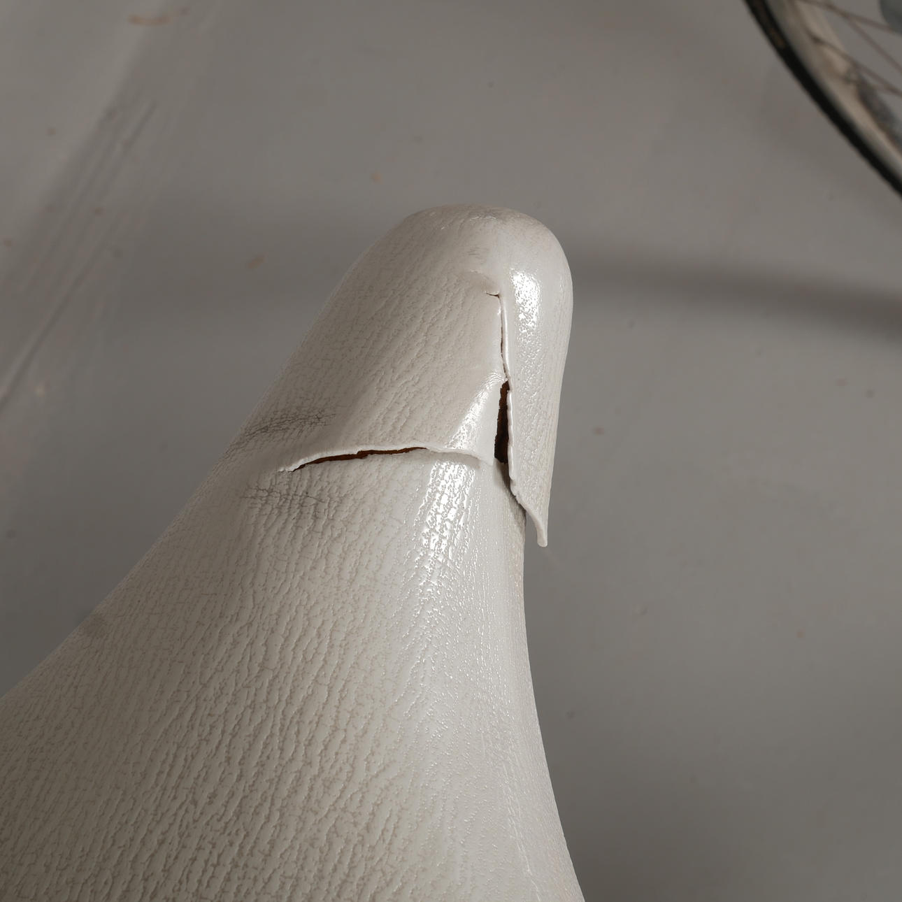 Brugsslitage. Rust bla kæde, sadel med skader. Beskadiget forlygte.