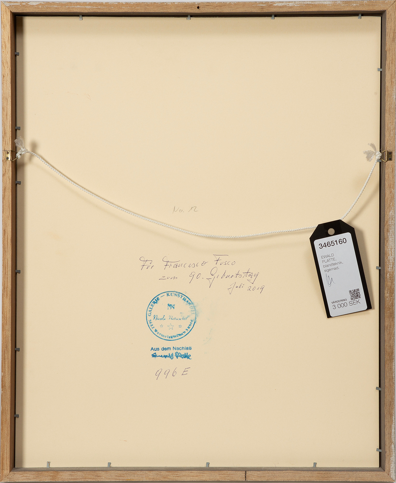 3465160. EWALD PLATTE, blandede medier, sigtet.