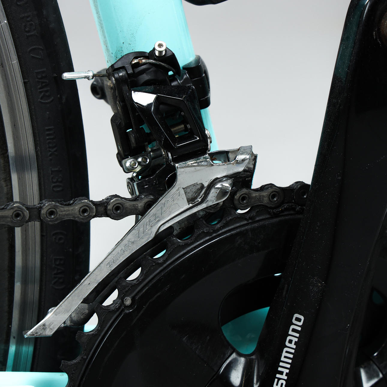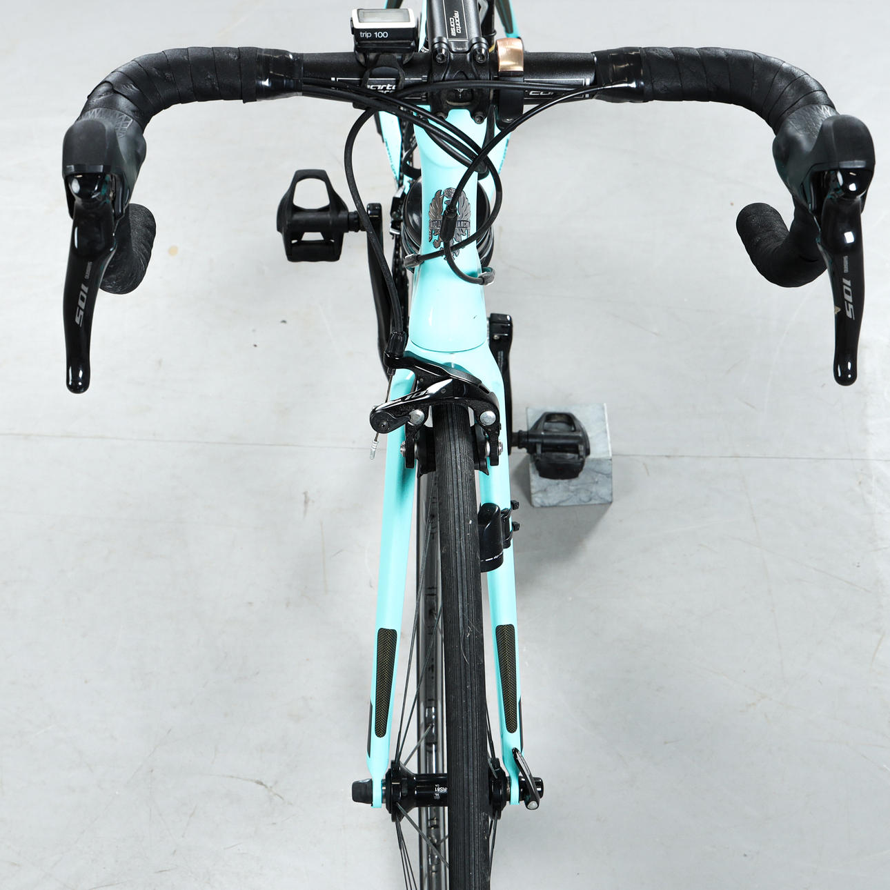 Kulfiberramme, gear og bremser Shimano 105.
