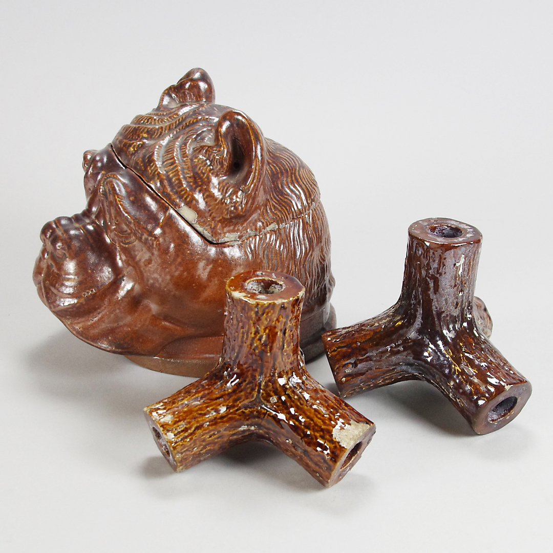 347290. TOBAKSDÅS OG 1 PAR LYSSTAKE, keramik.