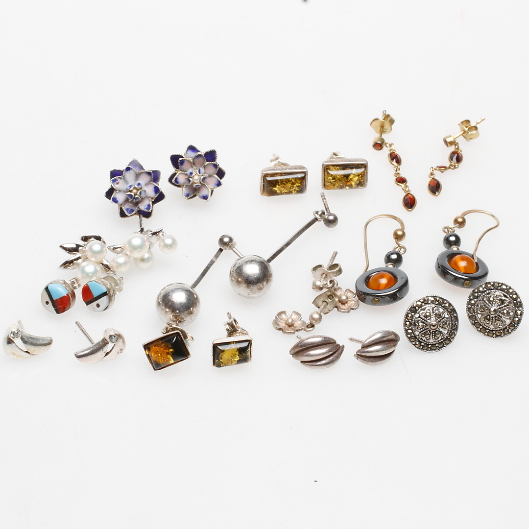 347329. ØRERINGE, 13 par, sølv og sten, 1900-tallet.