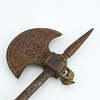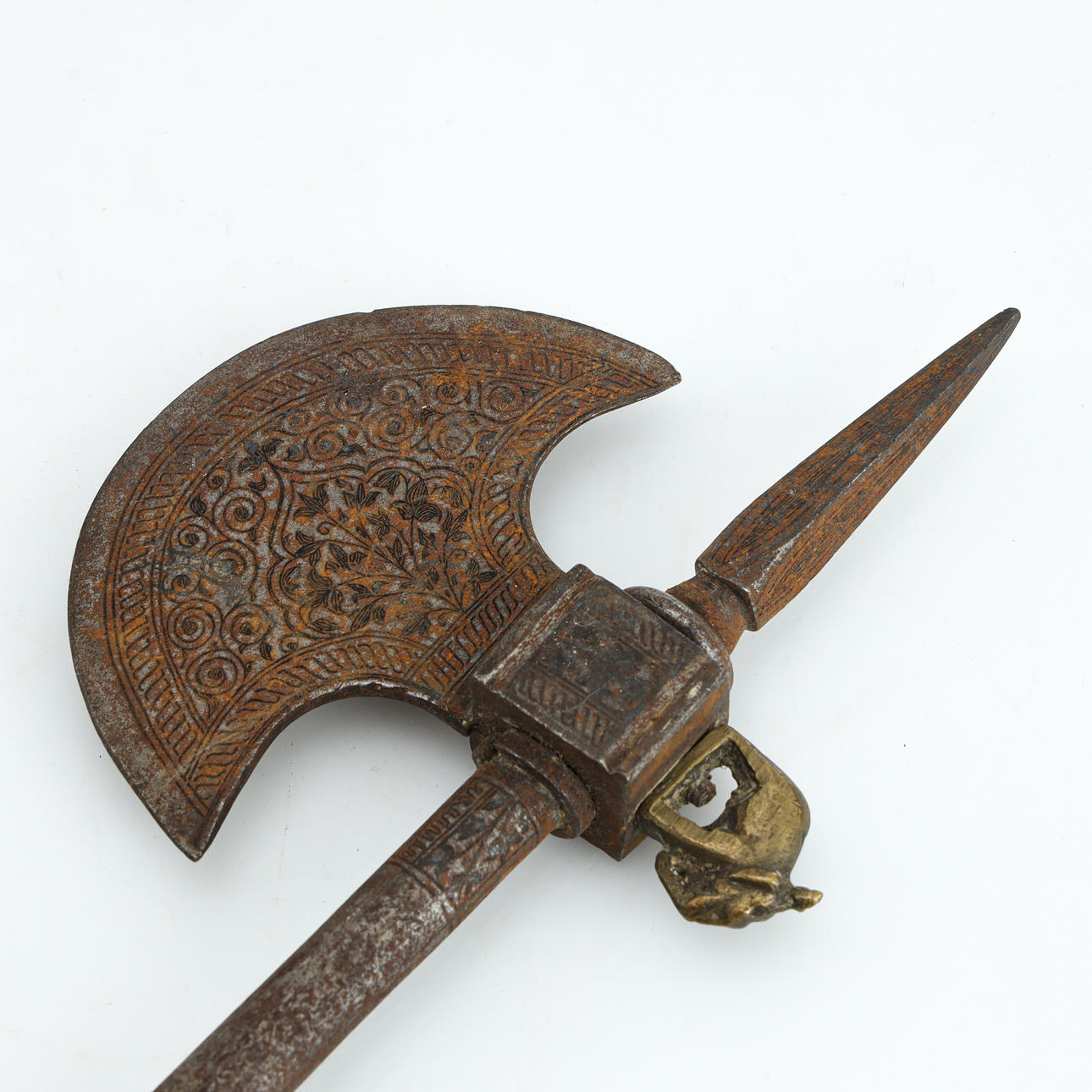 Øksblad med dekorationer, messing elefant, længde ca. 58 cm.