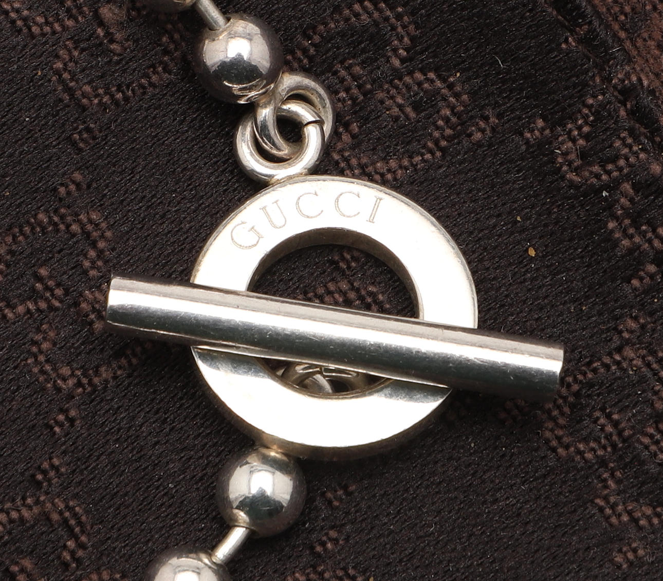 3490099. EN SØLVPERLE HALSKÆDE AF GUCCI.