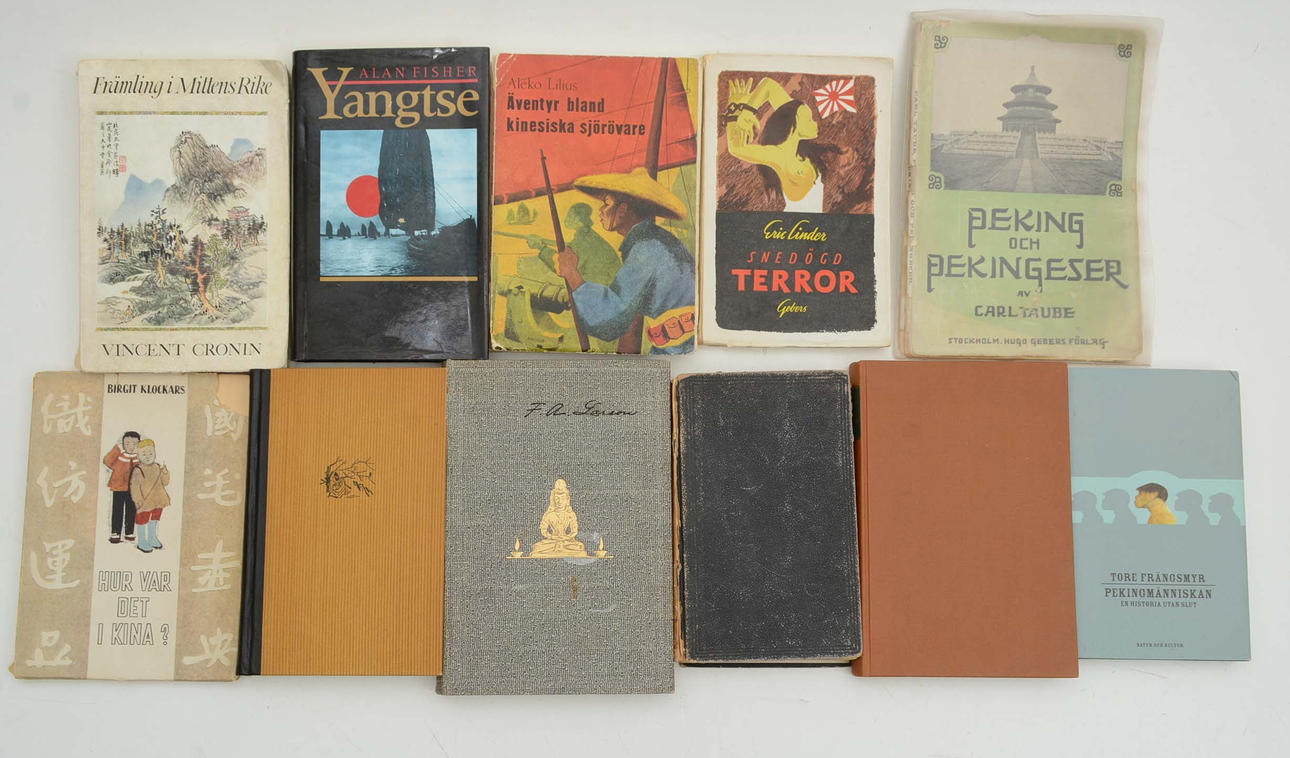 3491658. Engelske og svenske bøger om Kina. 11 bind.
