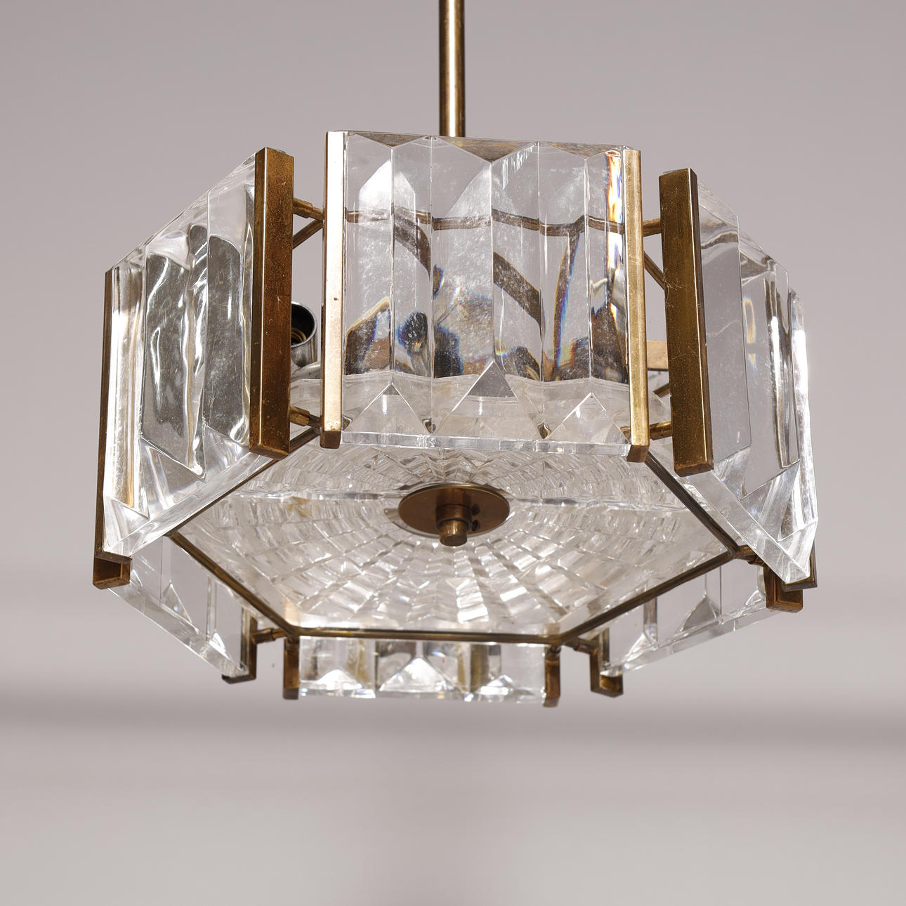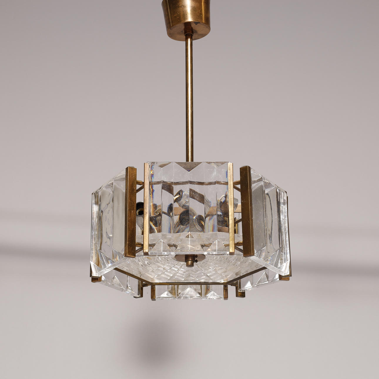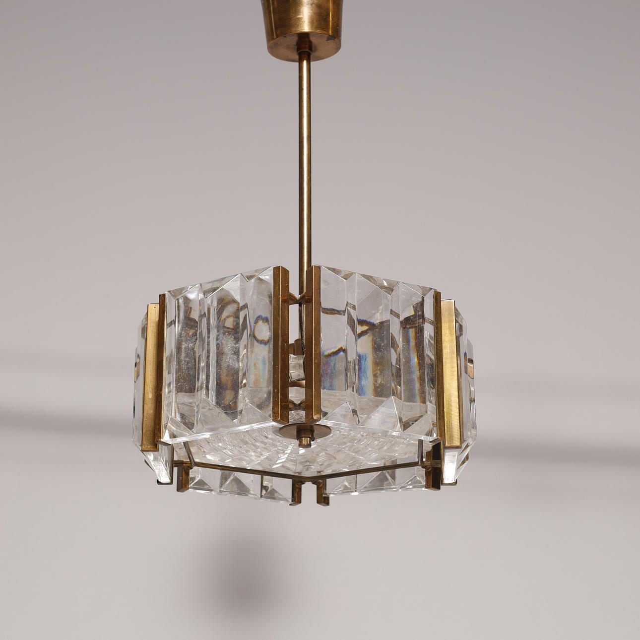3505989. Art deco Loftlampe af messing og krystal glas.