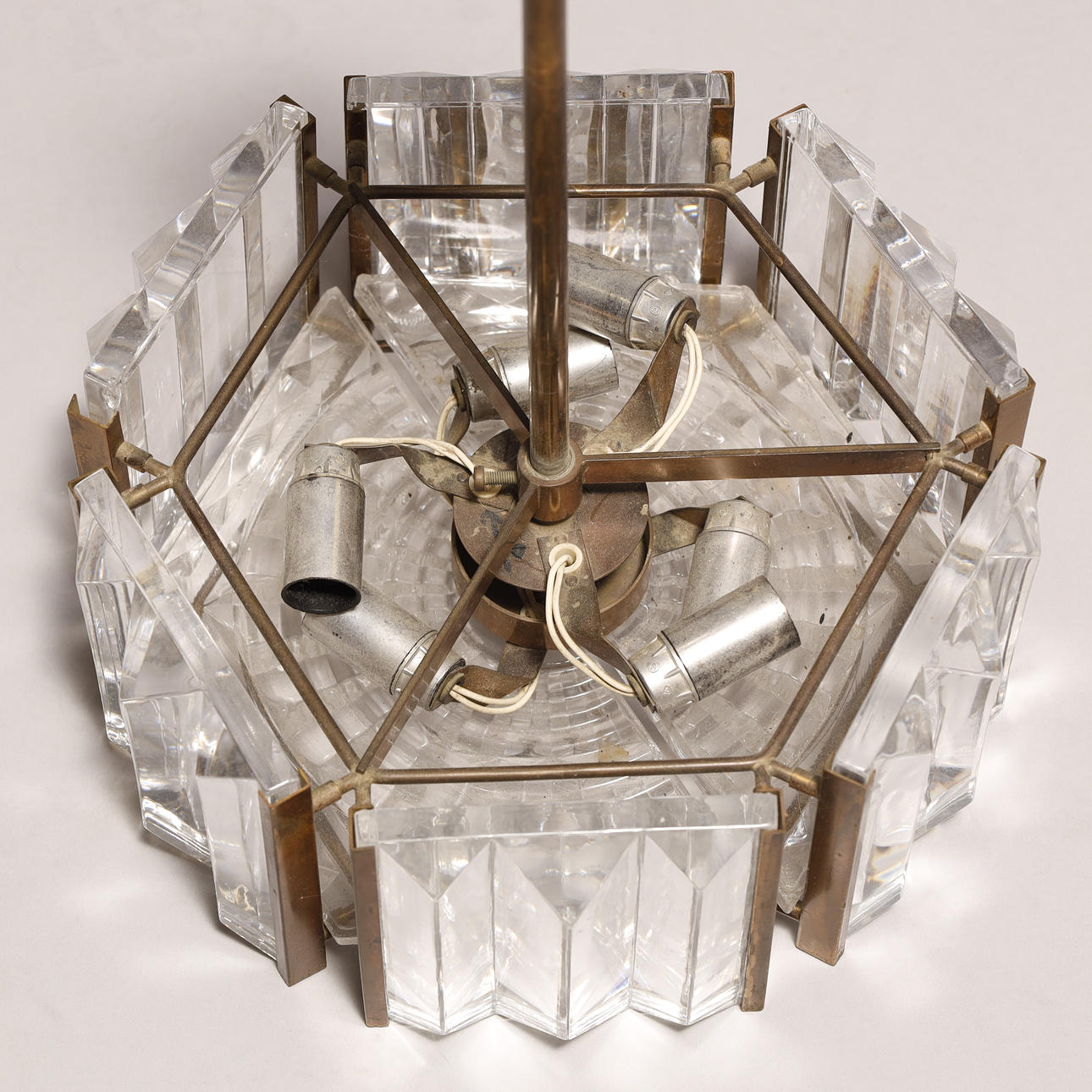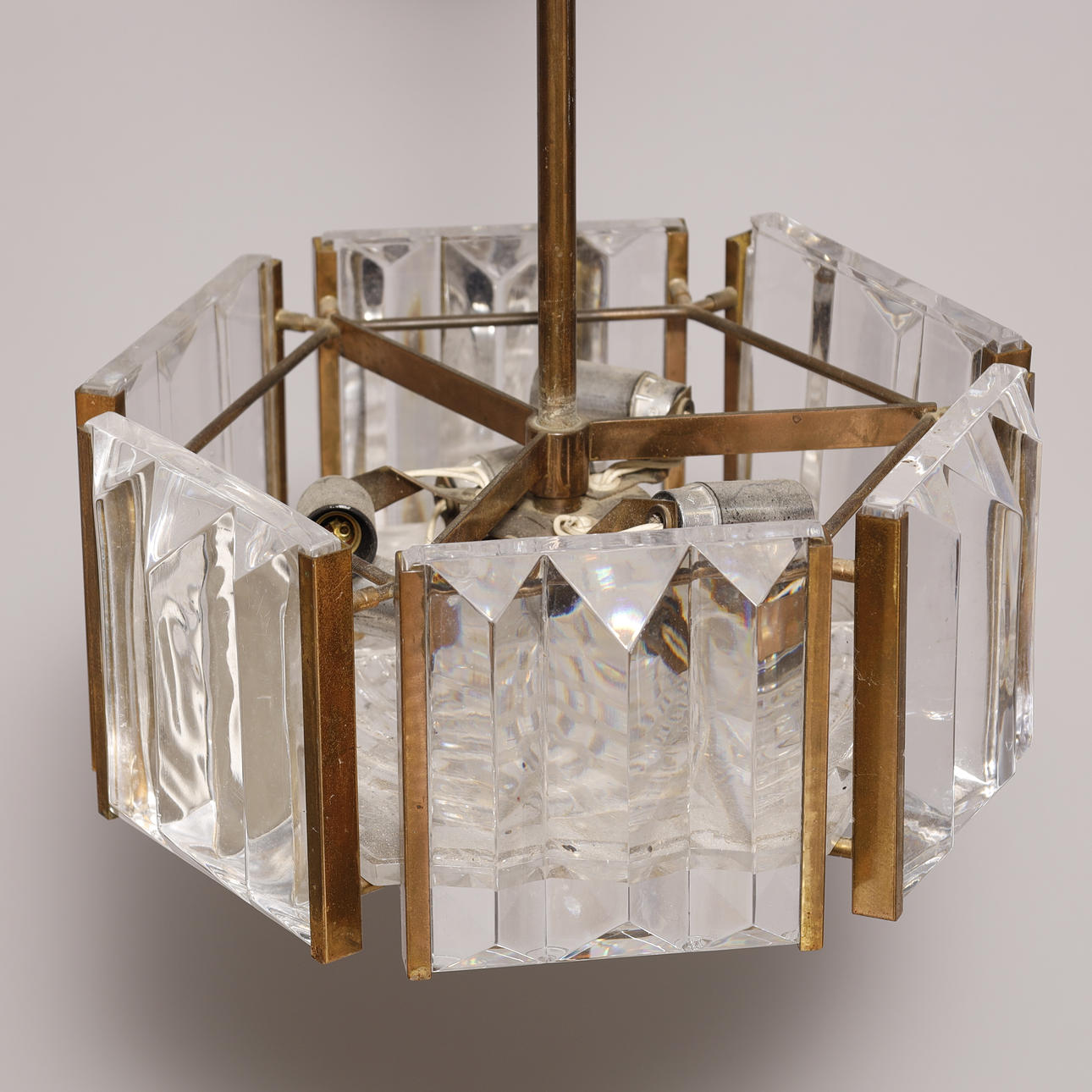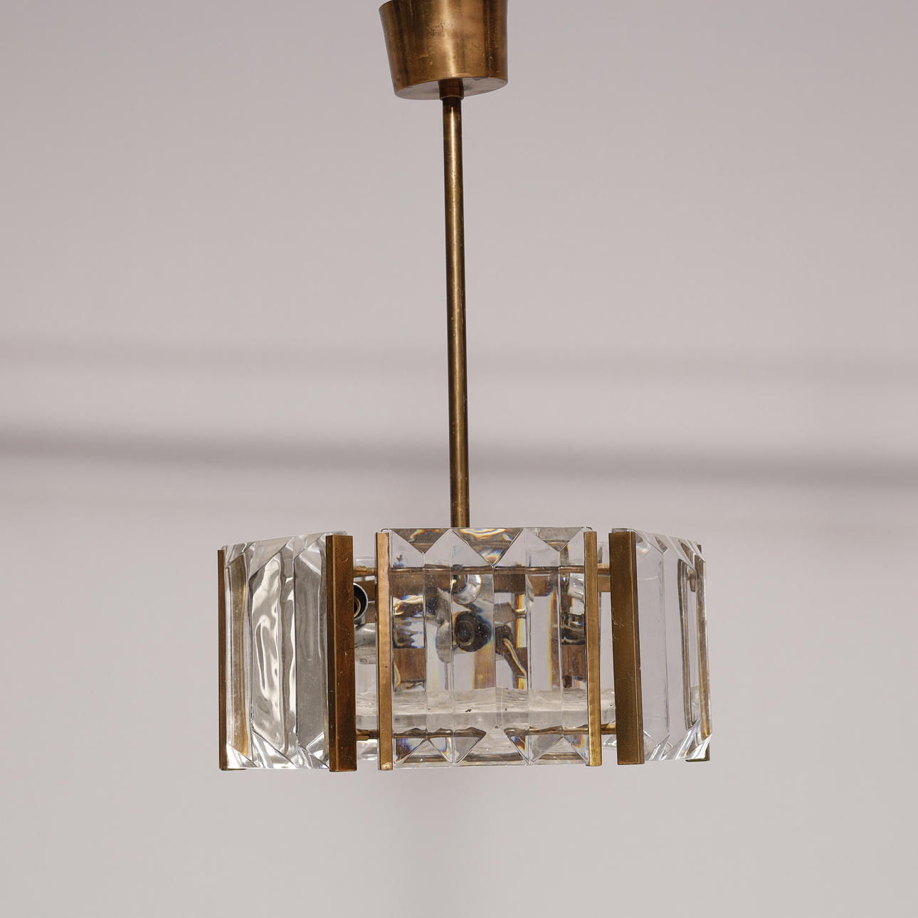 3505989. Art deco Loftlampe af messing og krystal glas.