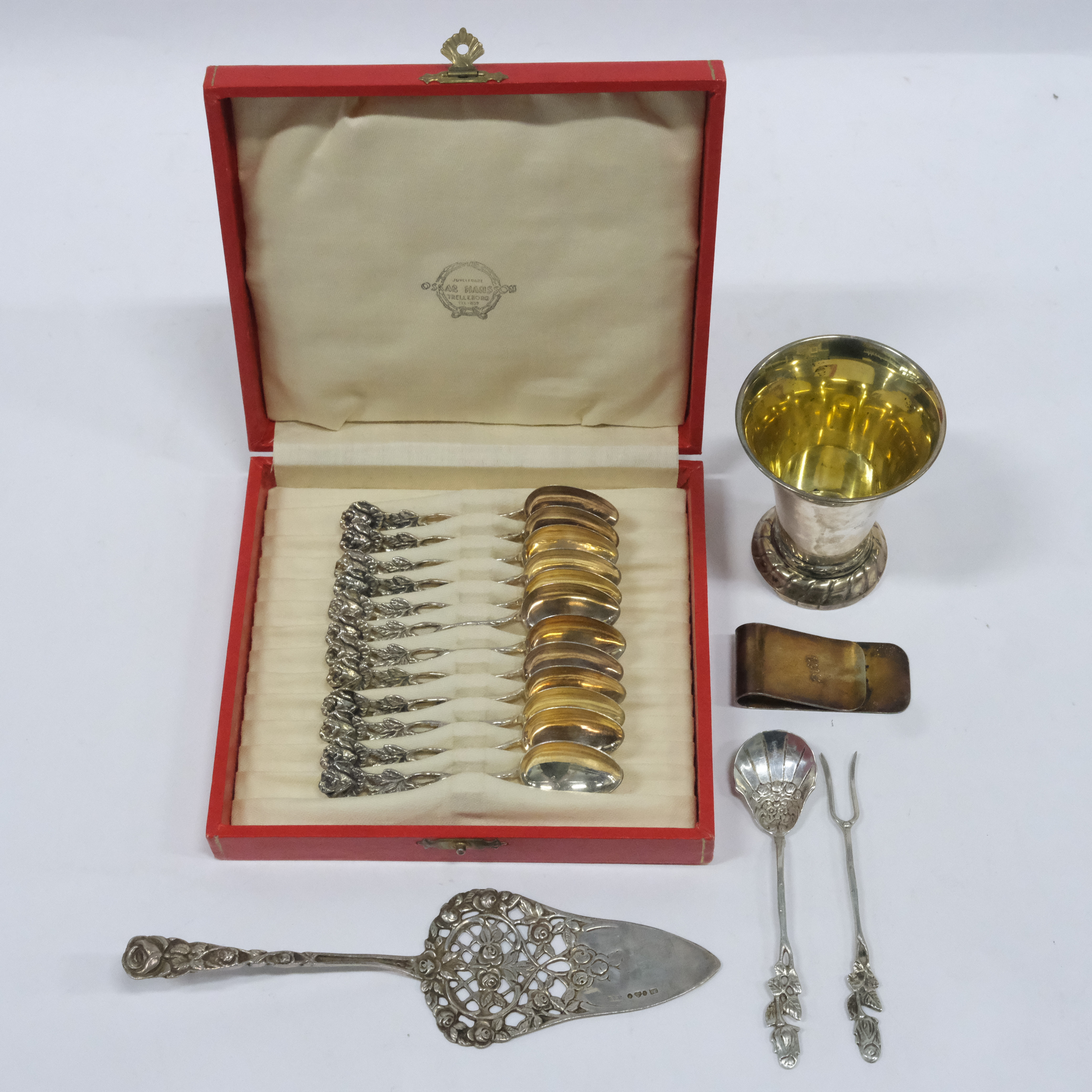3508513. SØLVTØJ, BESTIKBÆGER OG PENGESEDDELKLIP.