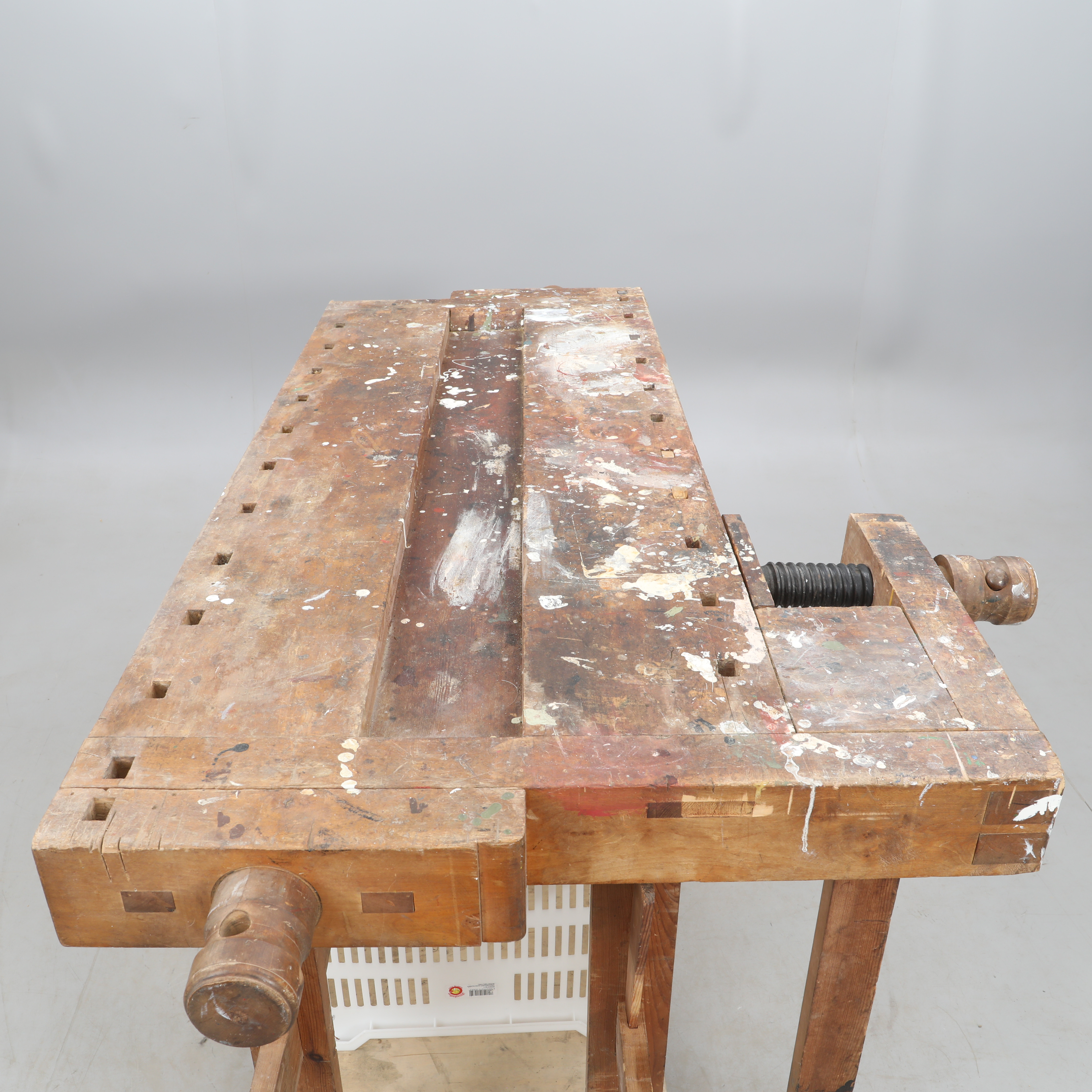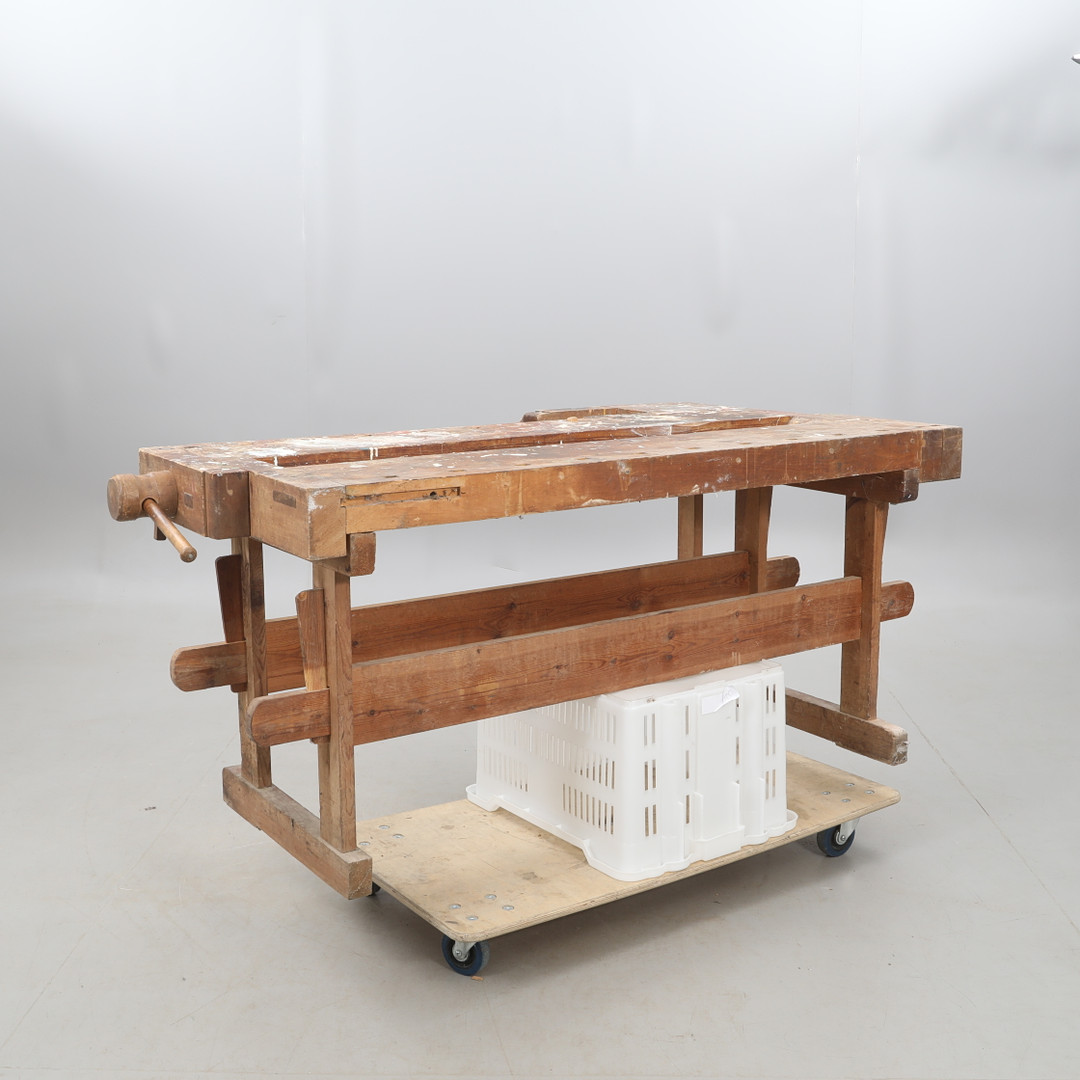 3508822. TØMRERBÆNK, tre faste trævinger.