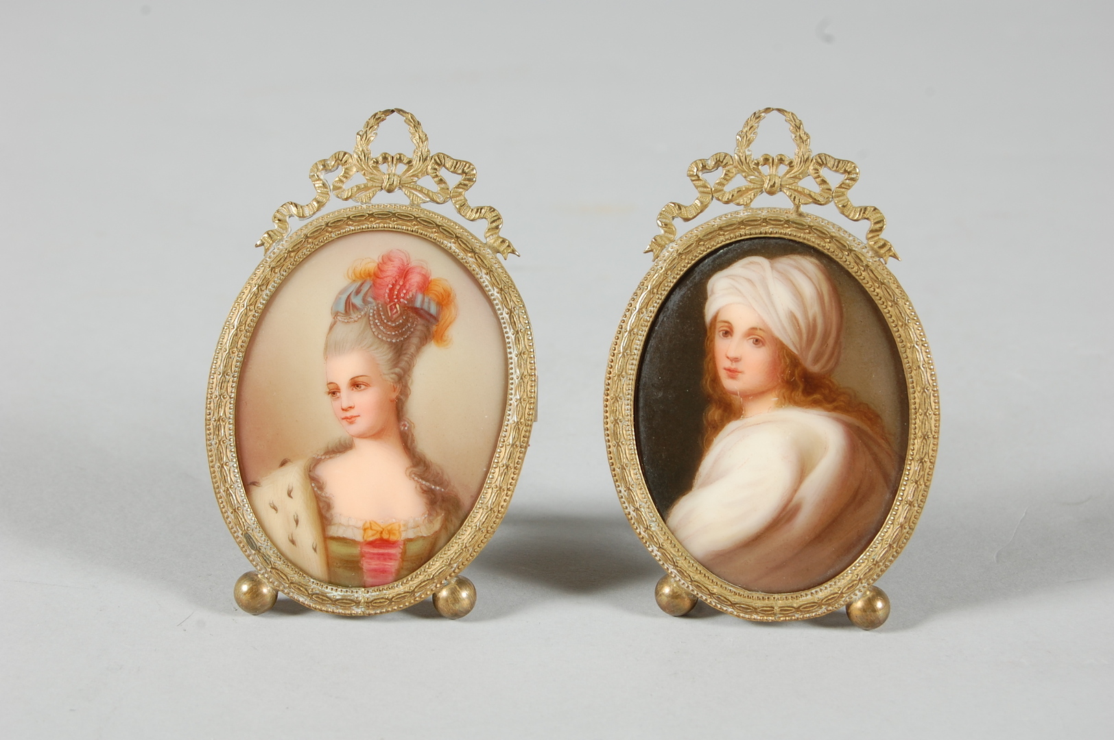 35127. MINIATURMALIER, 1 par, porcelæn, 1800-tallet.