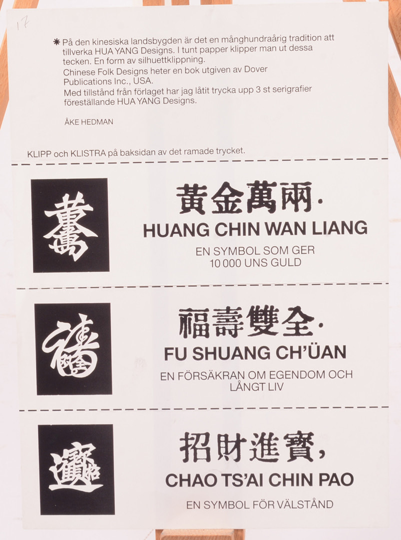 3513718. ÅKE HEDMAN. Kinesiske folkedesign. Seriegrafik.