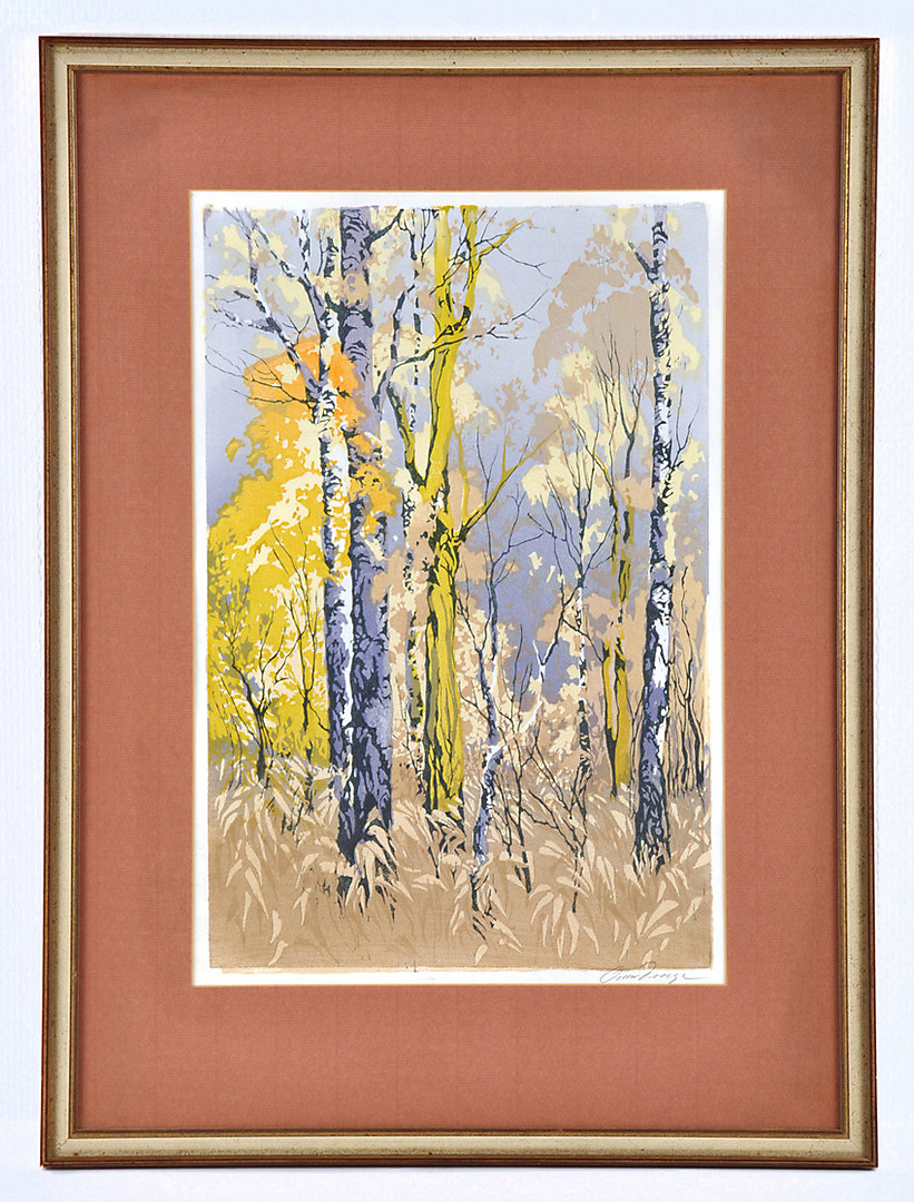 351409. OSCAR DROEGE. Birketræer i forårssolskin.