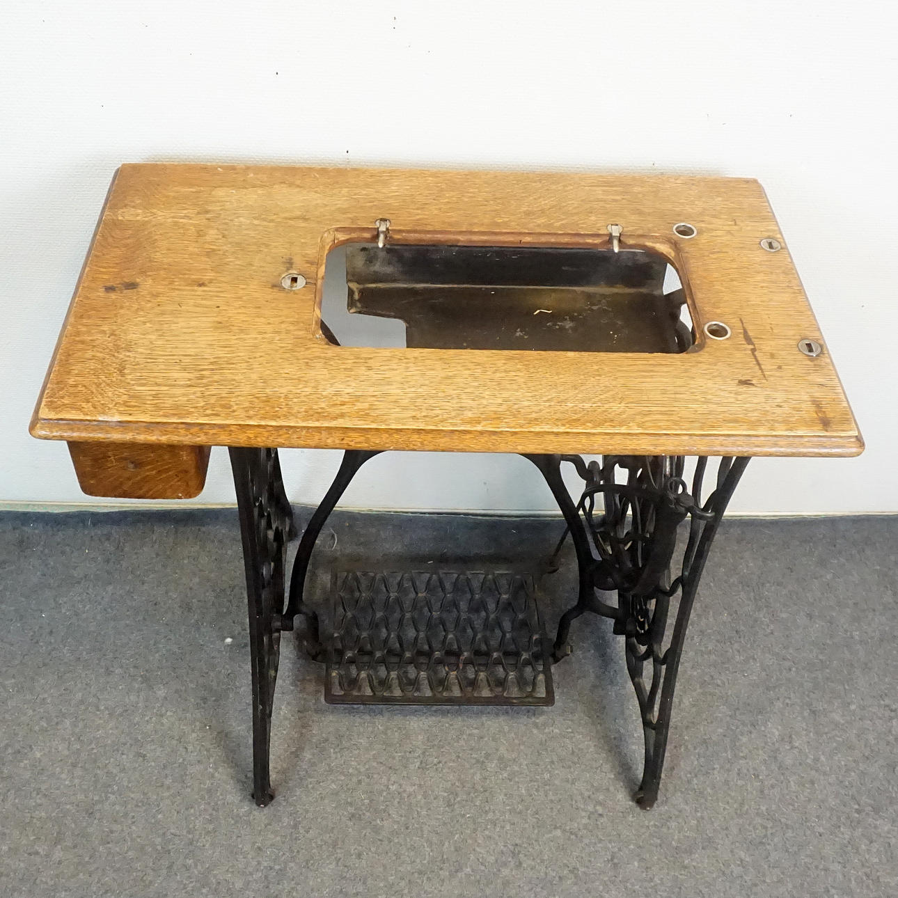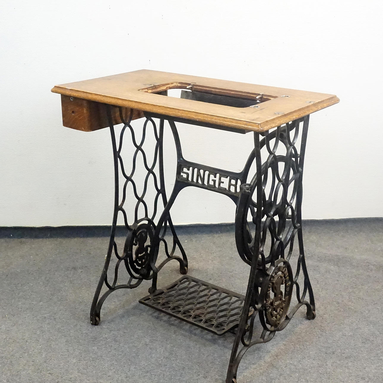 SYMASKINBASE, støbejern/træ, Singer.