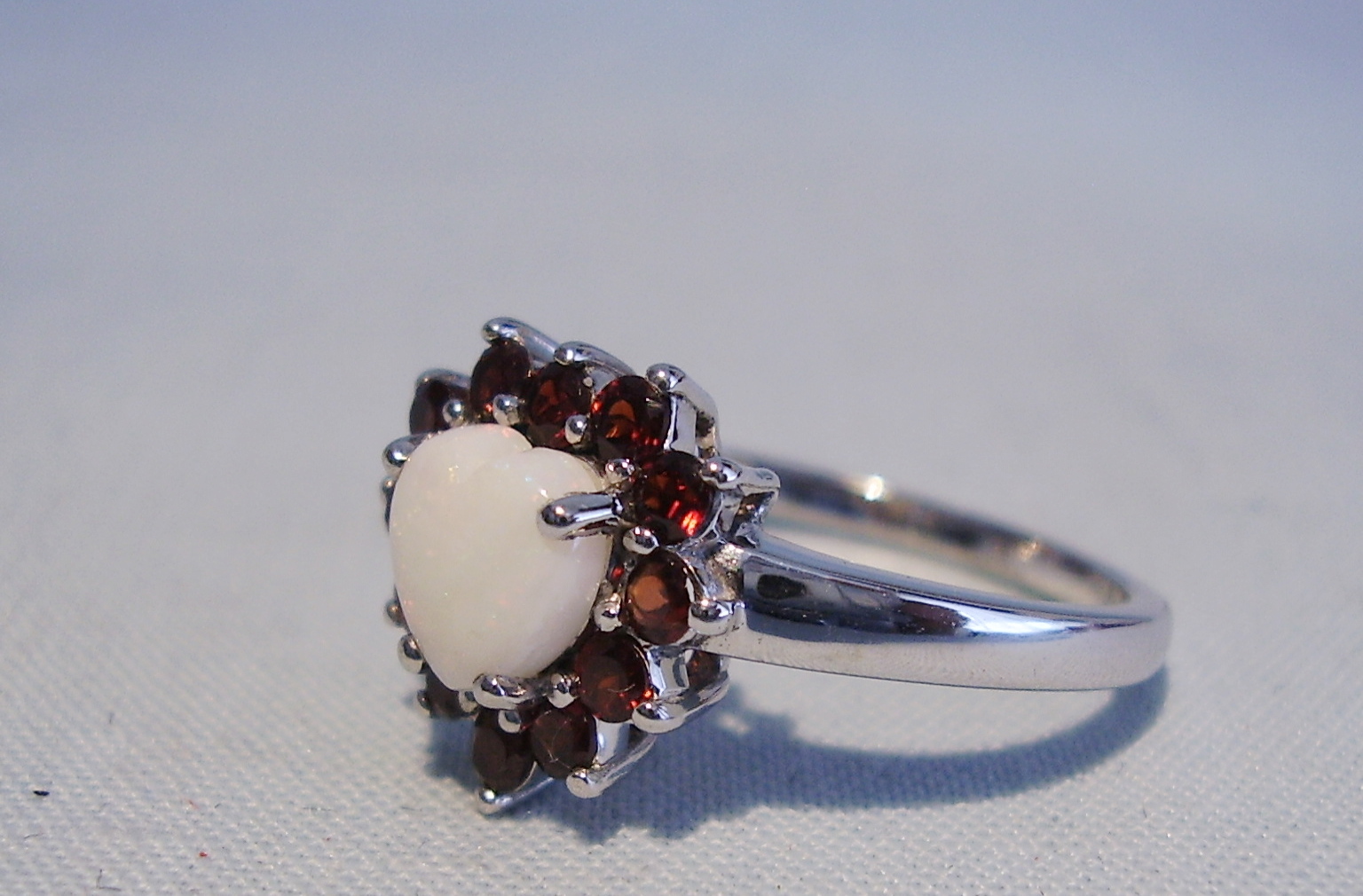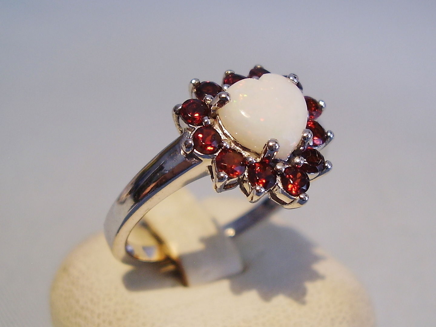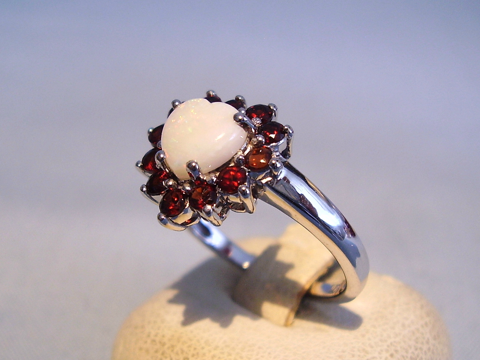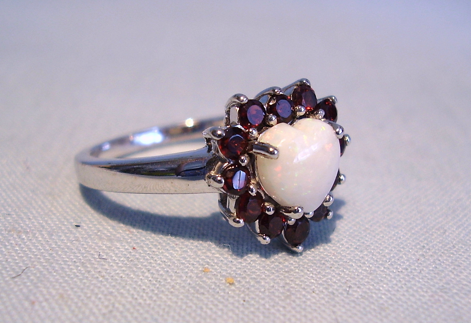 352167. OPAL RING MED GARNET FLY. 925 sølv.