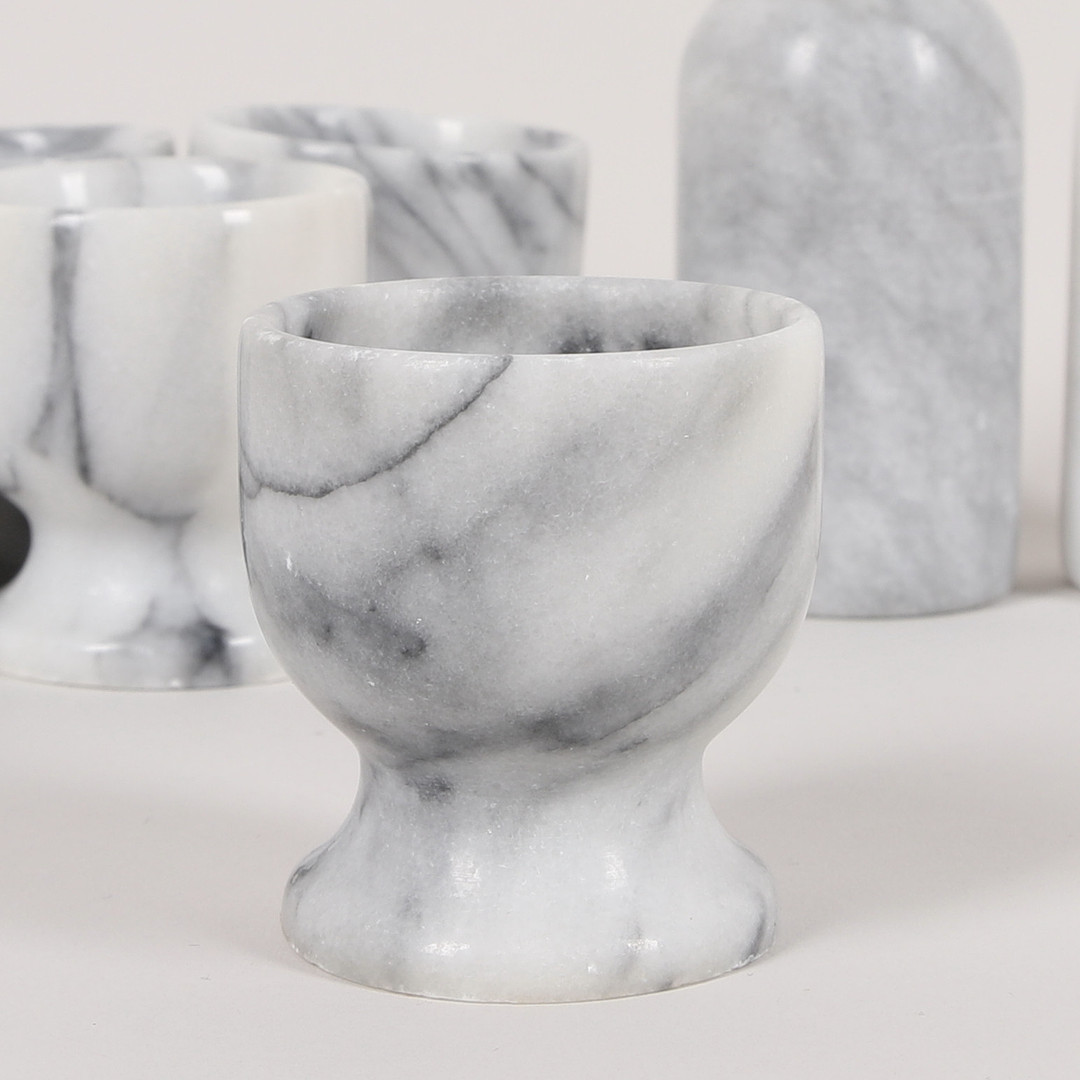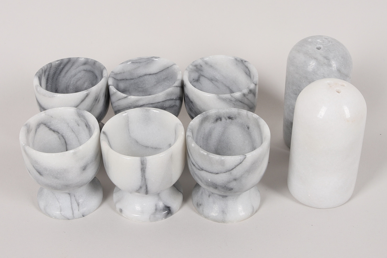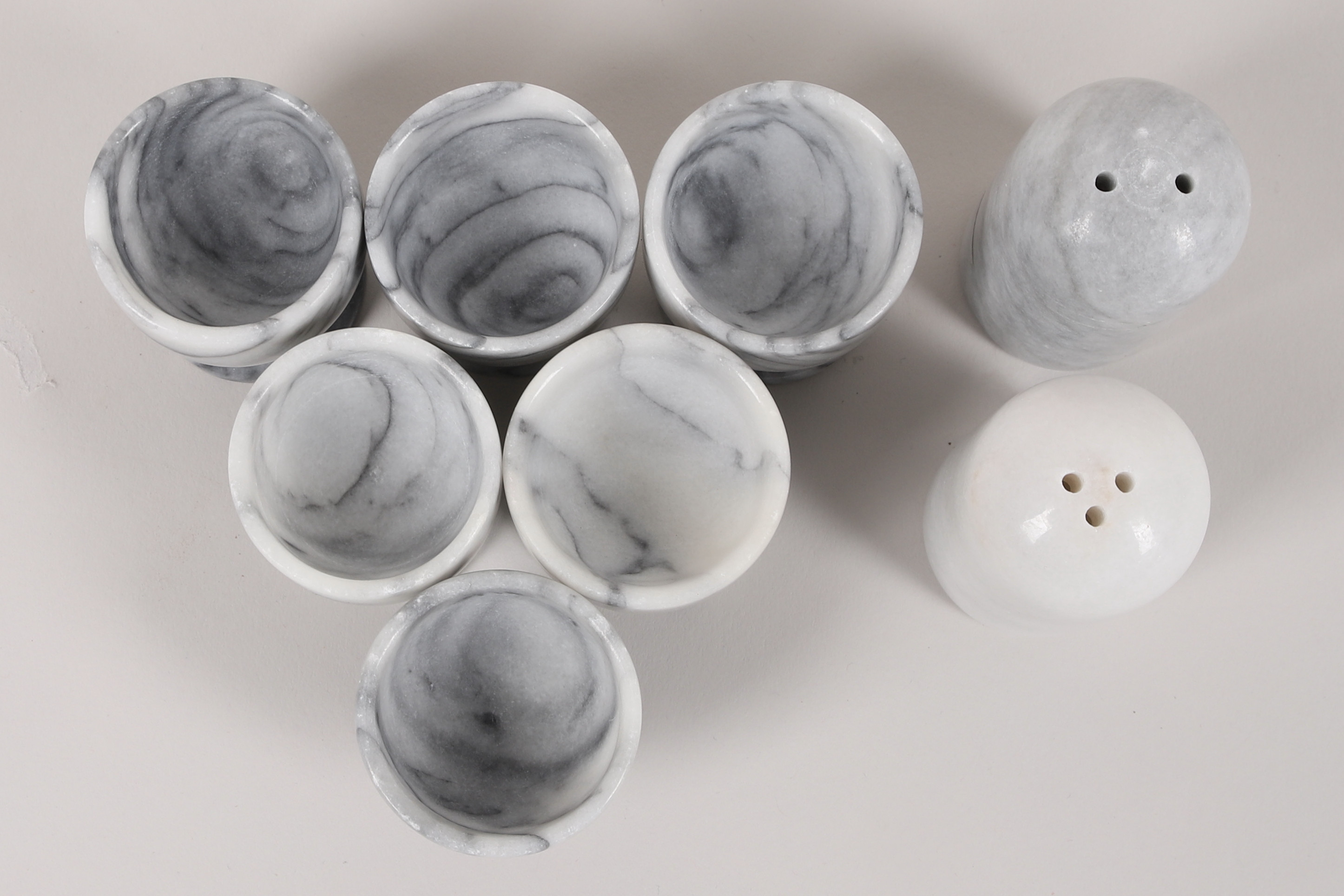 3524545. ÆGGEKOPPER, 6 stk, SALTBAKKER, 2 stk, marmor.