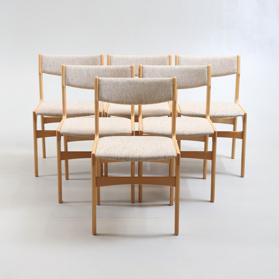 3528100. ERIK BUCH. STOLE, 6 stk., lys eg, Danmark, 1960'erne.