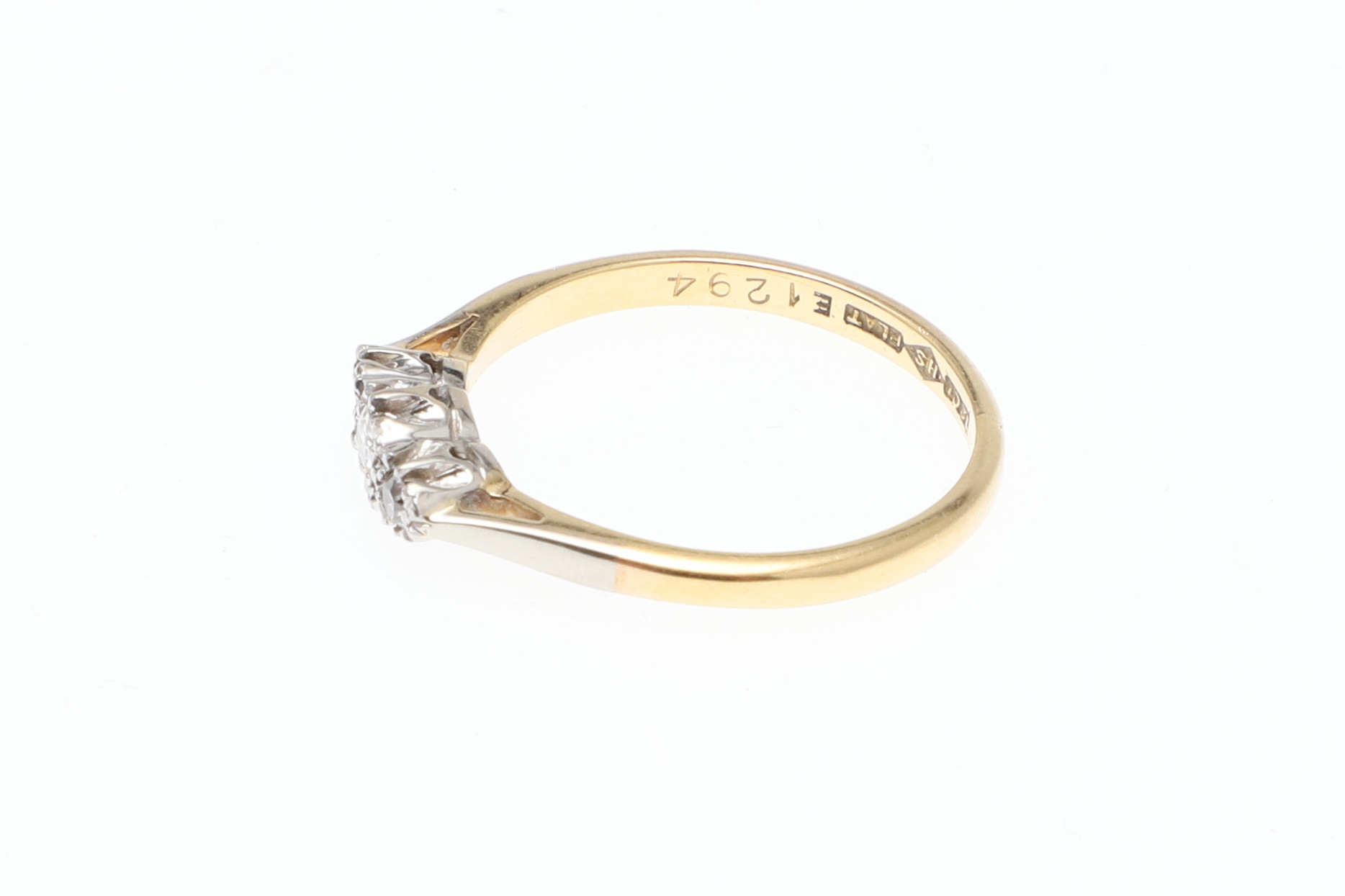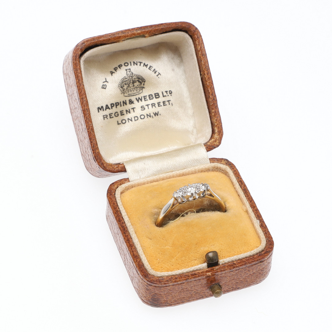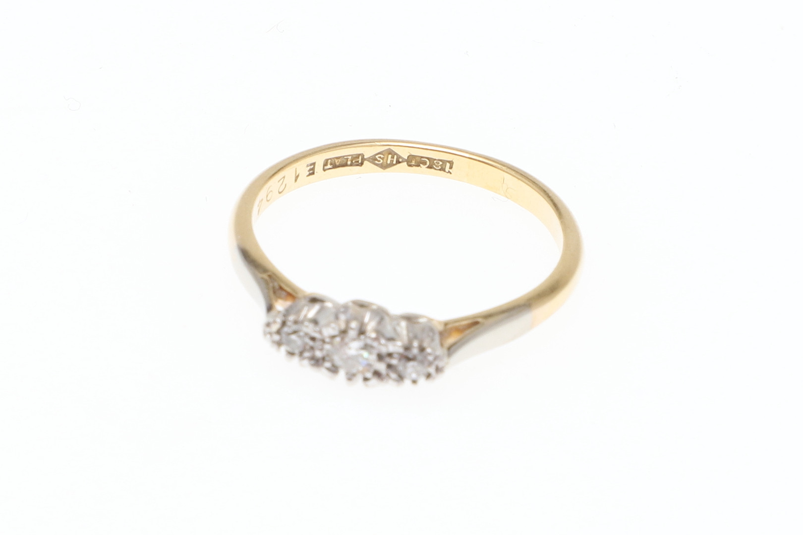 3531730. EN RING I 18 KARAT GULD OG DIAMANT TRE STEN.