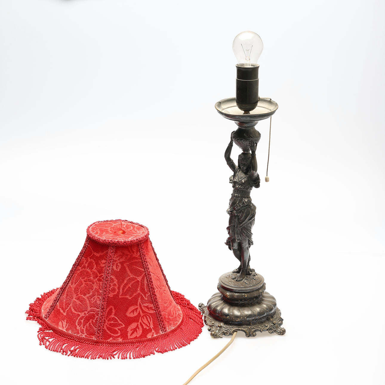 3532808. BORDLAMPE. 1920/30'erne, sølvbelagt statue.