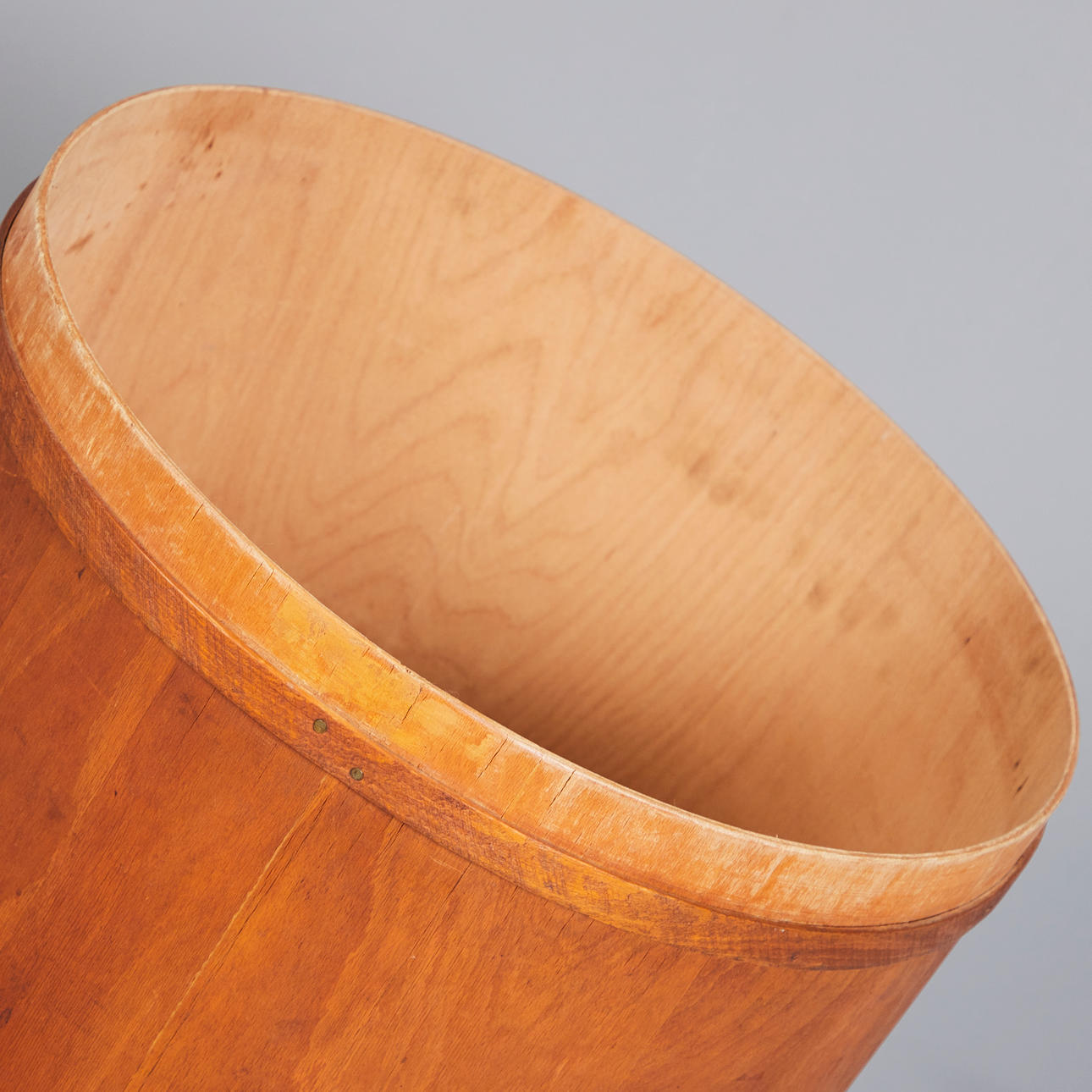 Cylinderformet teæske lavet af buet birkefiner med rundt låg, h.70cm, d.47cm.