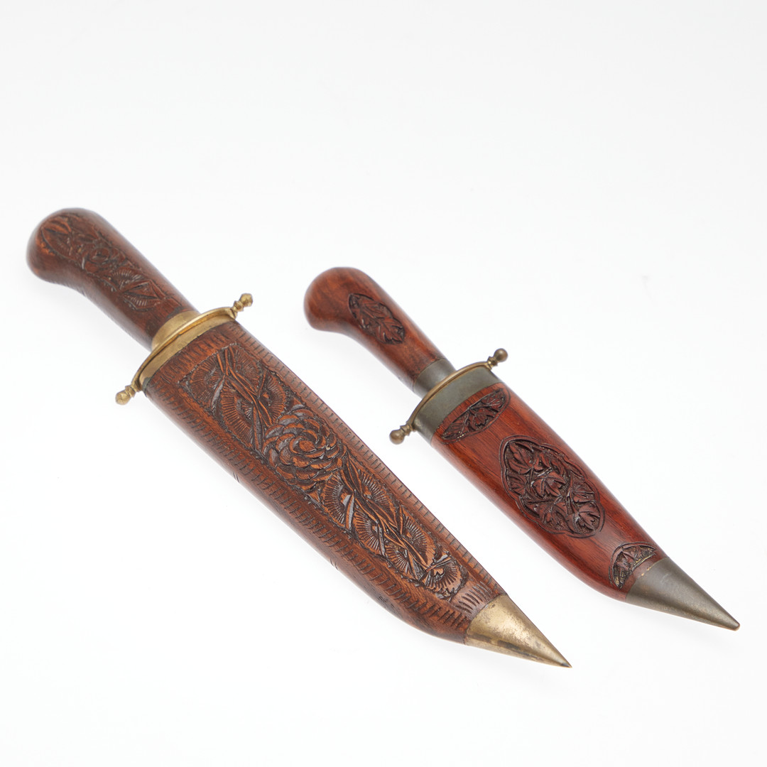 3535357. Indiske dolke, jernklinge, trækappe med udskæring (2).