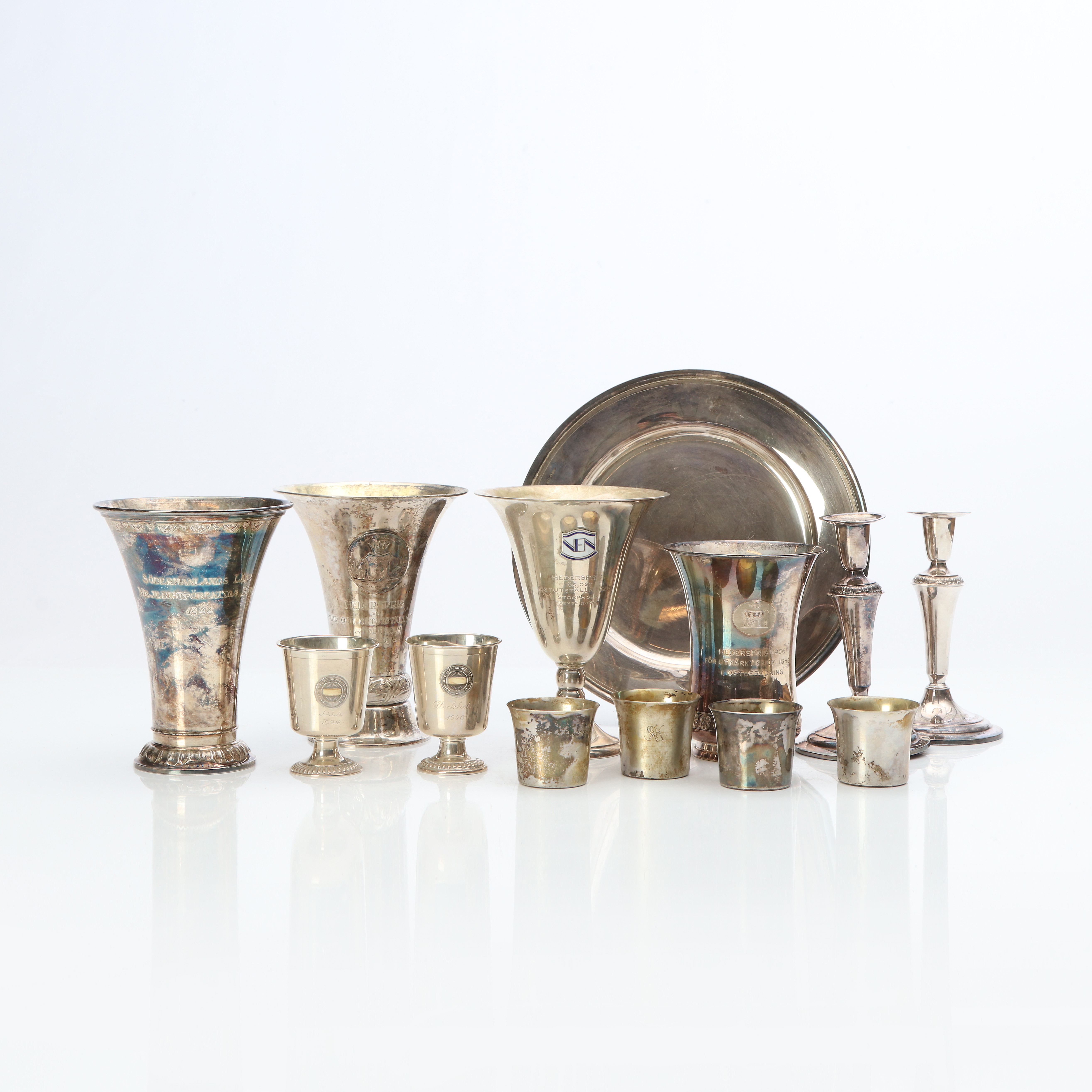 3541081. PARTI SØLV, 13 STK. Vægt ca. 1650 gram.