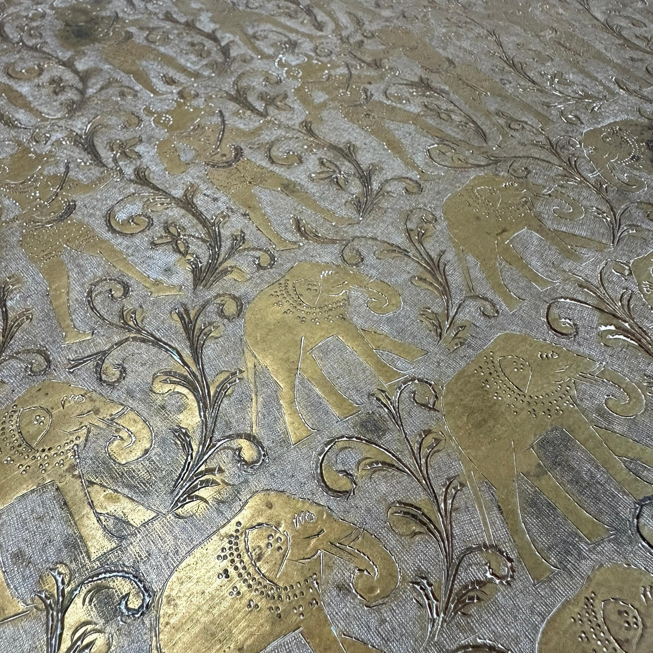 MESSINGBAKKE med hamret mønster, diameter 60 cm.