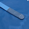 Indvendigt i blå polyester med 6 rum med lynlås, adressemærke.