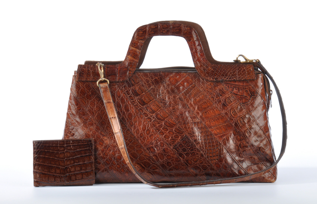 355321. GROSSE HANDTASCHE. Krokodilleskind, plus pung.