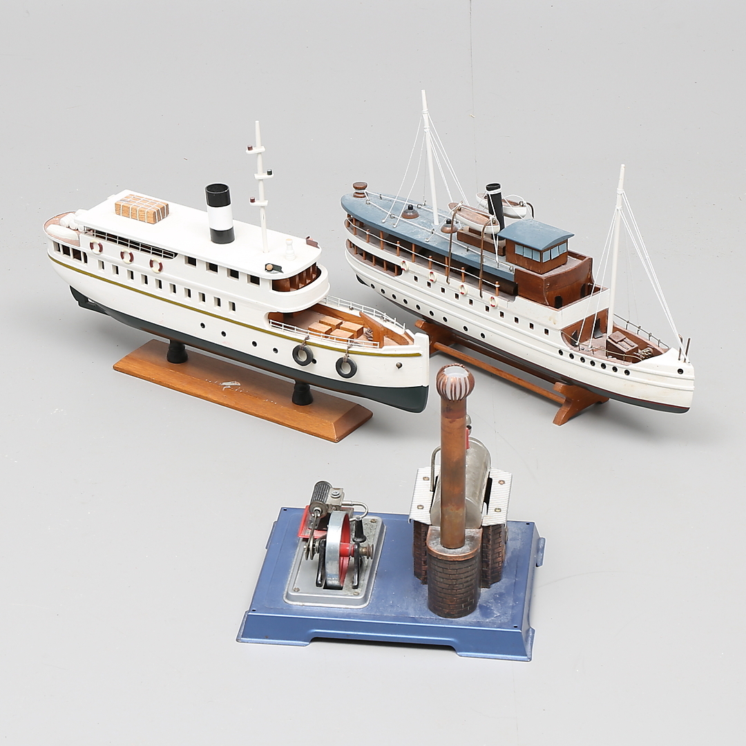 355462. DAMPMOTOR, Wilesco og MODELBÅDE, 2 stk, 1900-tallet.