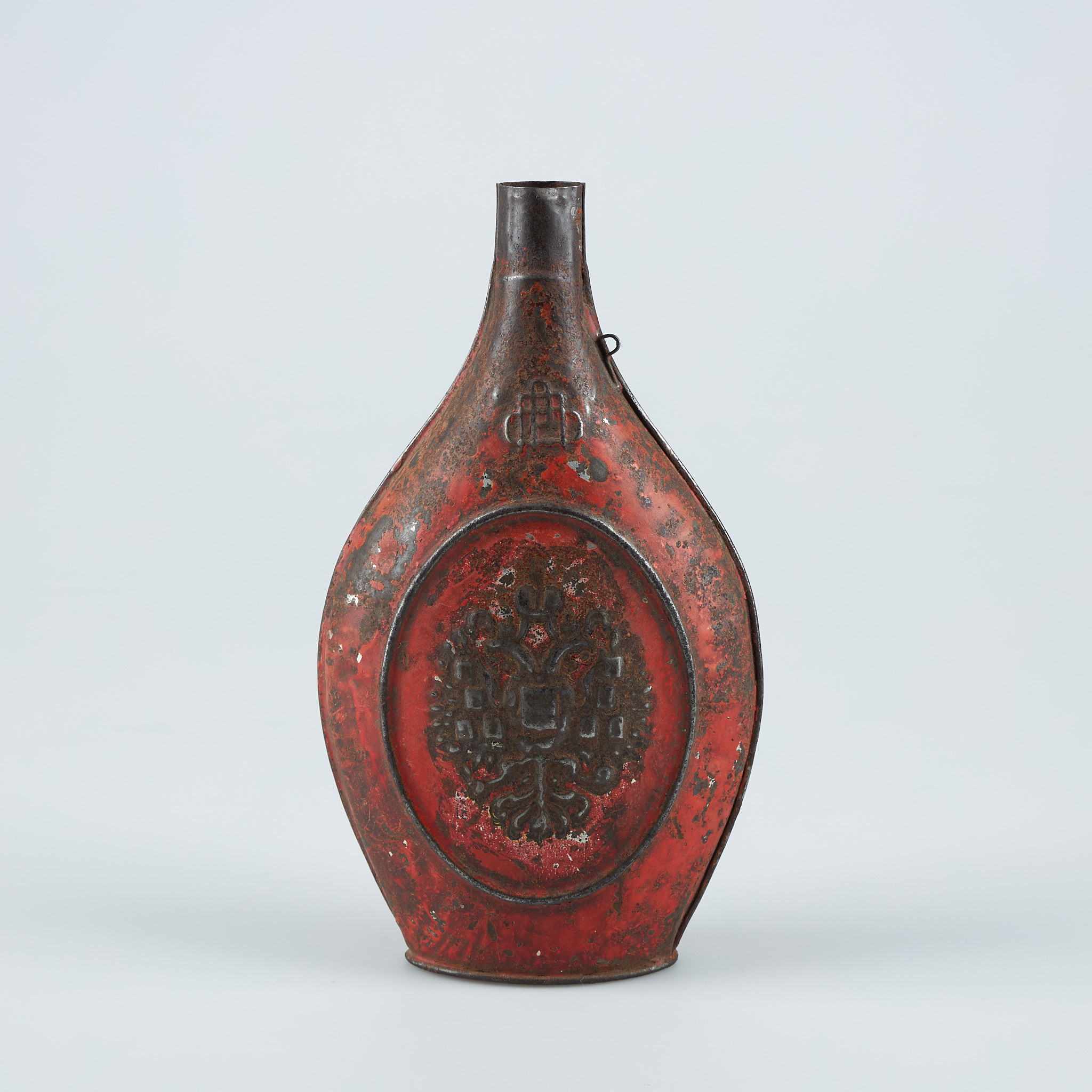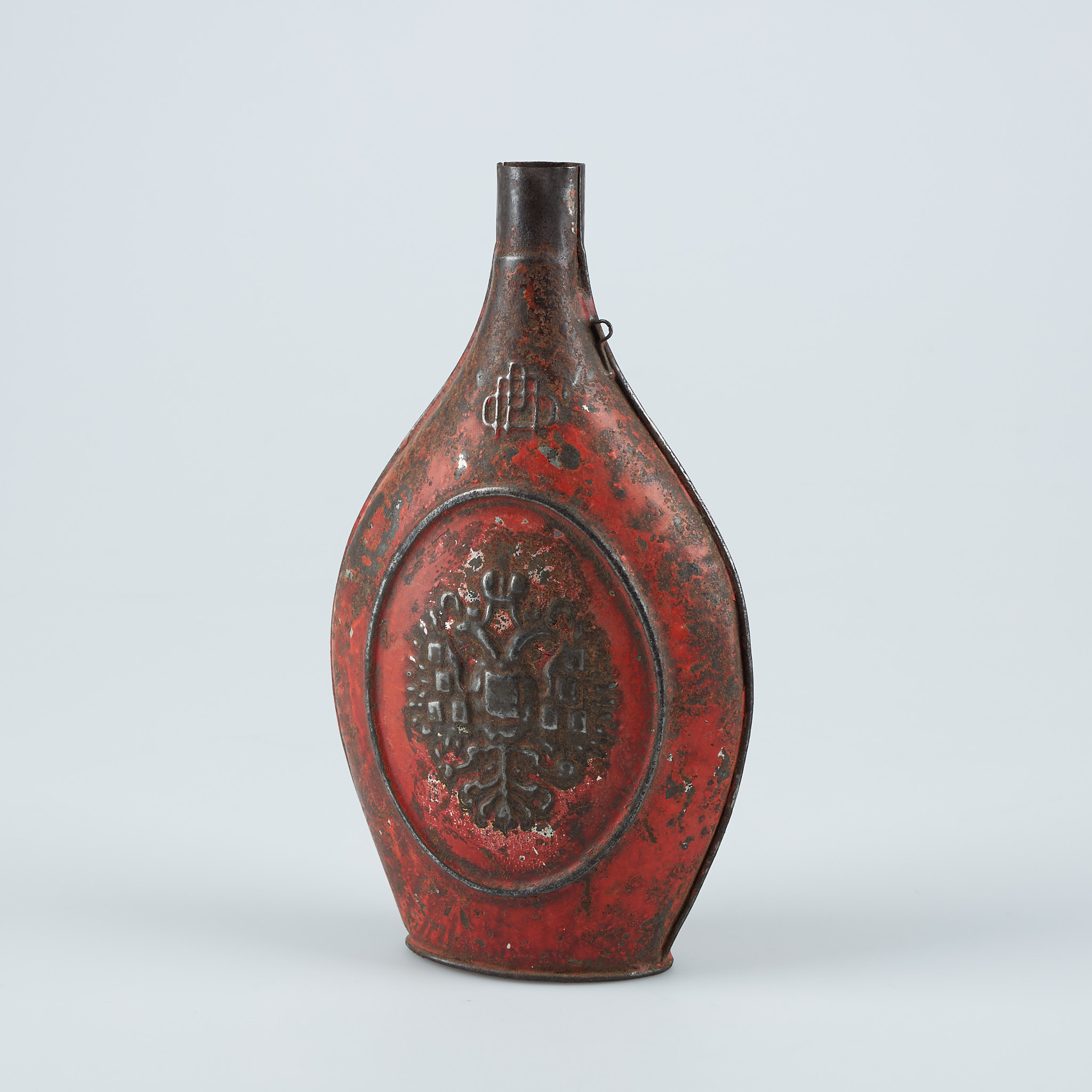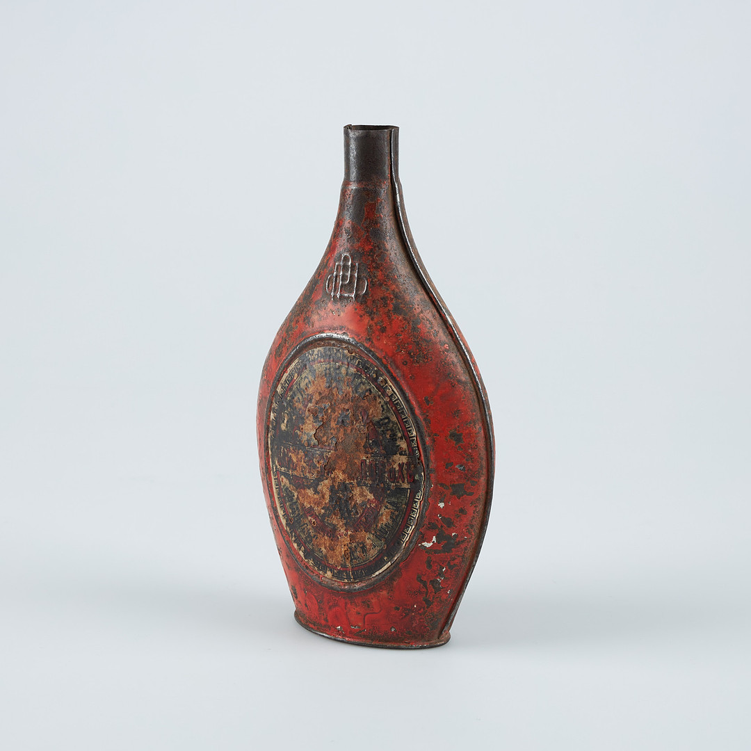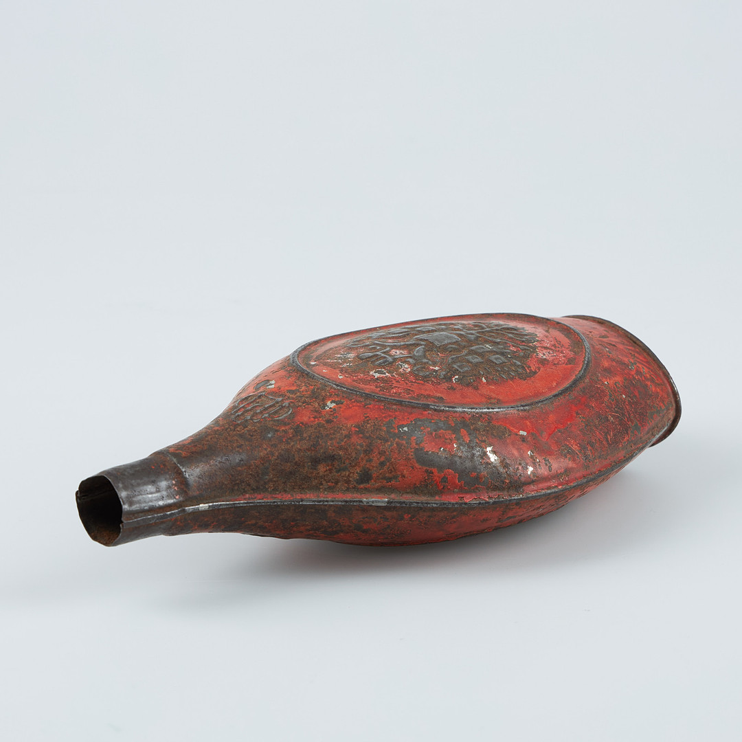 3557026. Krudtflaske, århundredeskifte 1900, metalplade.