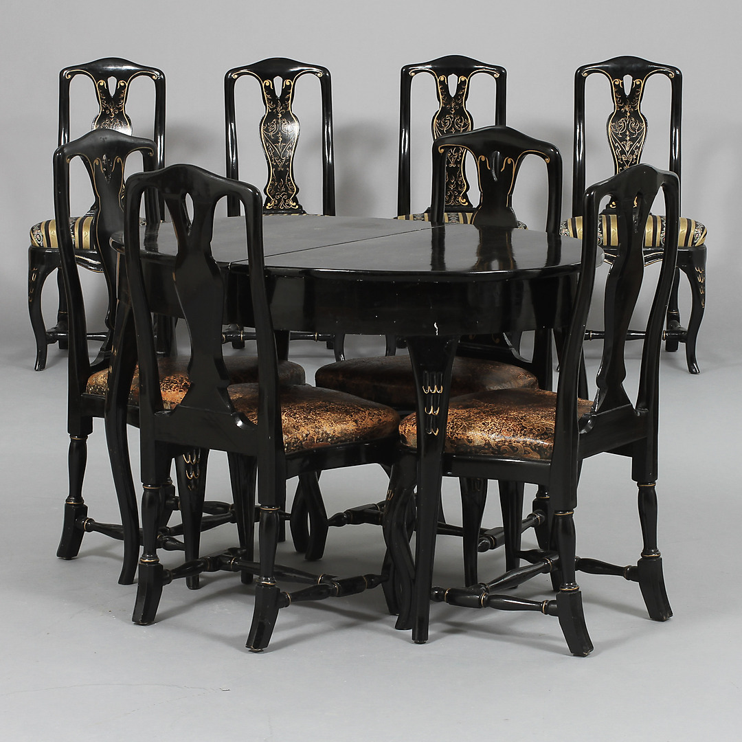 355790. SPISESTUEGRUPPE, 9 dele, senbarokstil, 1900-tallet.