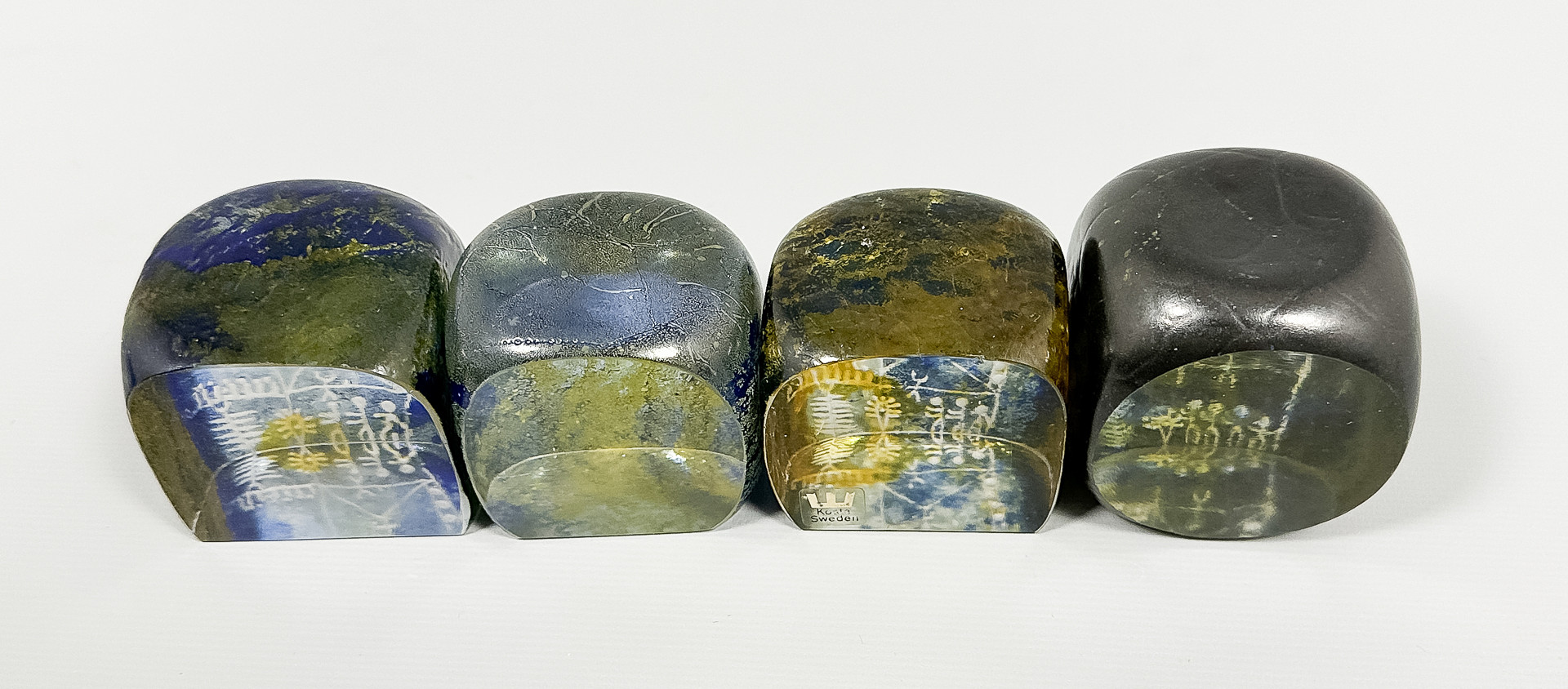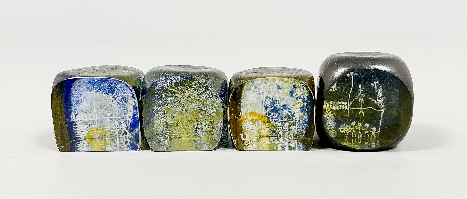 3561205. GÖRAN WÄRFF. GLASKUBER/BOGTRYK, 4 stk., 1 signeret.