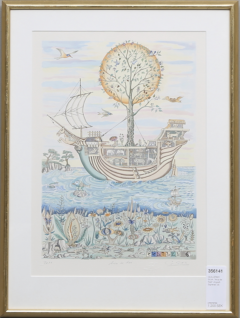 356141. GUILLERMO SILVA. "Noahs bue" Litografi. Underskrevet.