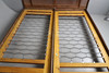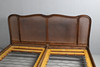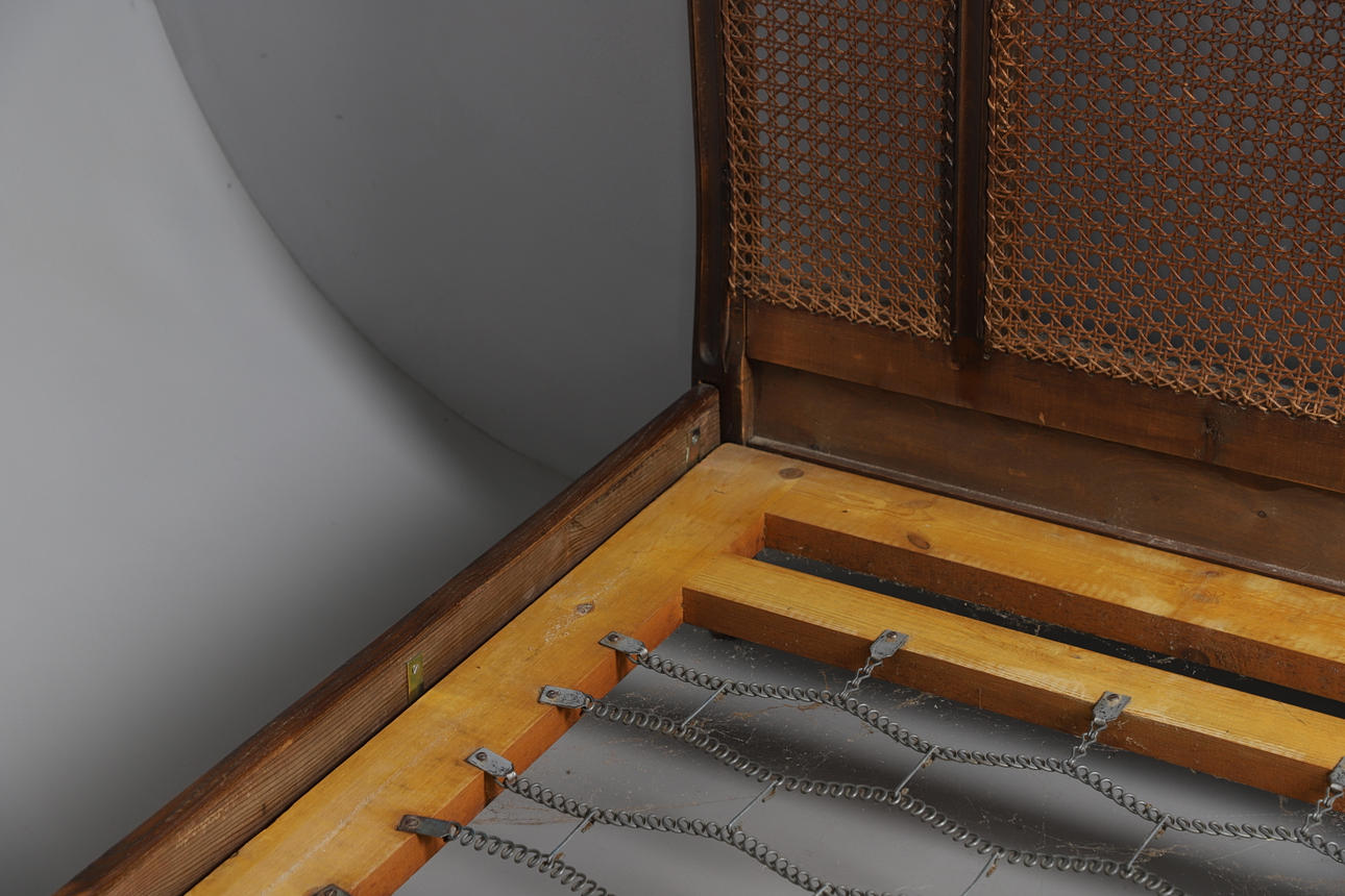 En stor fransk seng med rørspidser, med sidestøvere og en central støtte, der understøtter to enkeltsenge (ville tage to separate enkeltmadrasser) 187 cm på tværs.