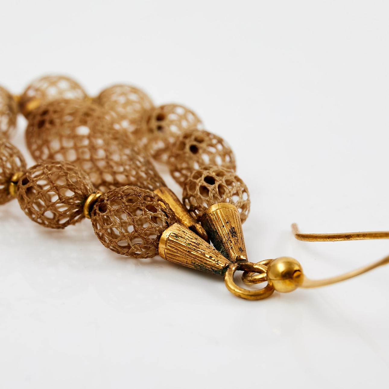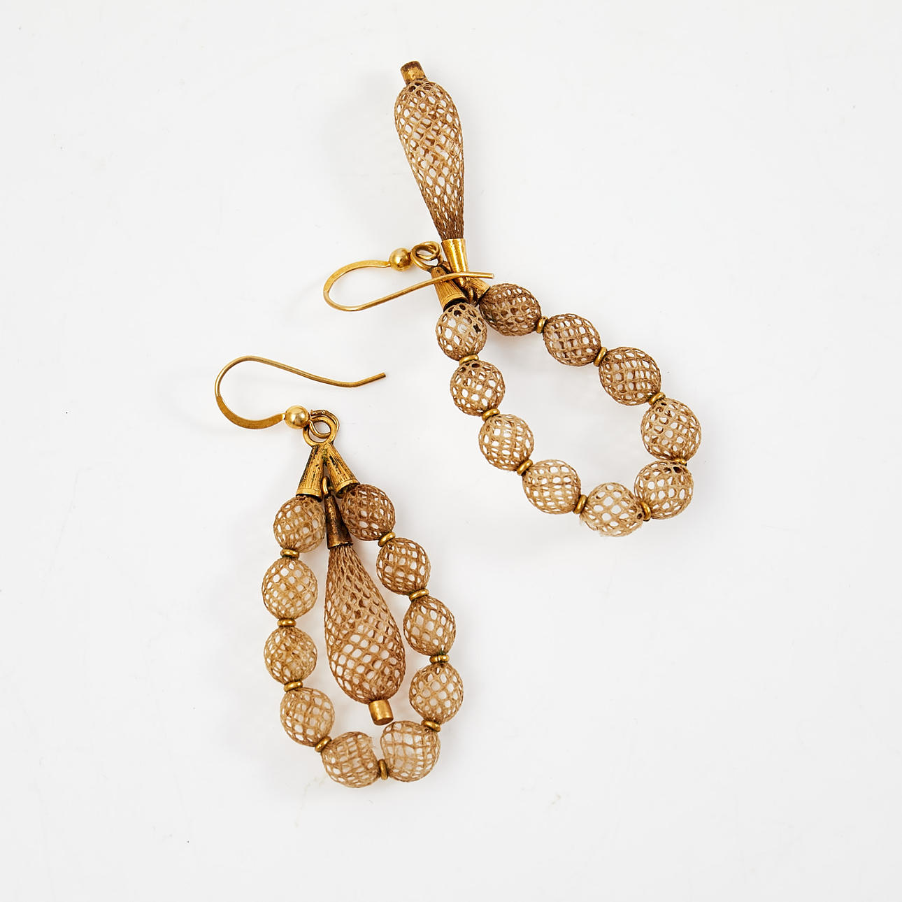 Et par øreringe, forgyldt sølv, hårværk.