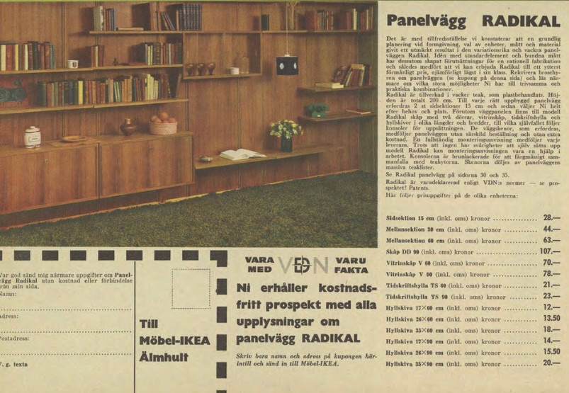 3567120. Reolsystem af teak, „Radikal“, Ikea, 1960'erne.