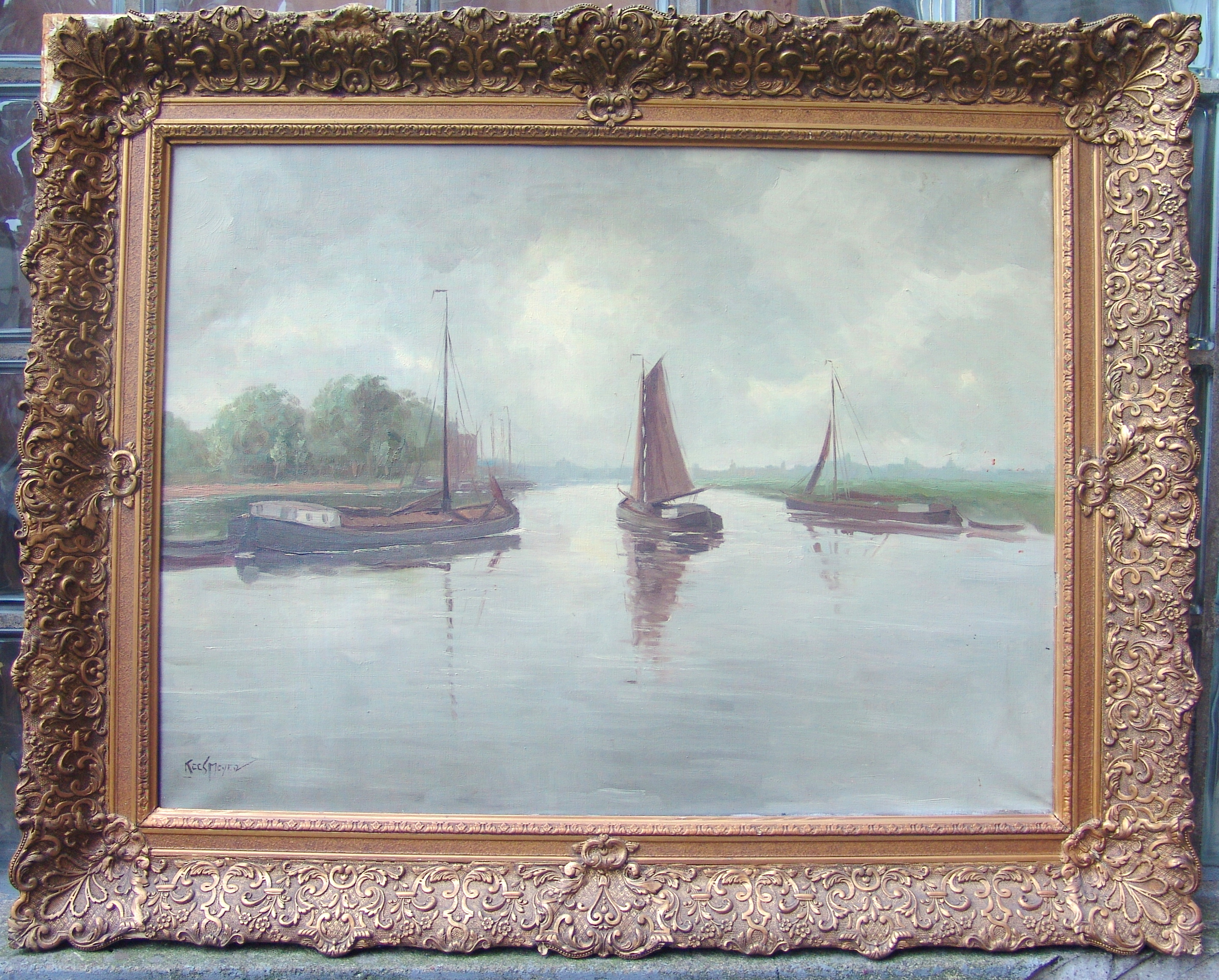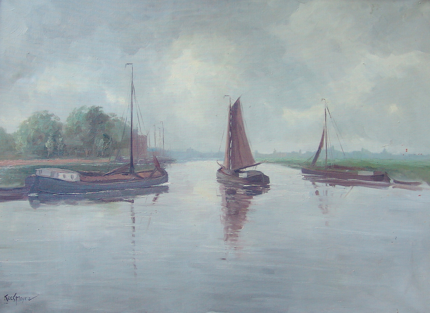 357199. KEES MEYER. Nedre Rhinlandskab med pramme.