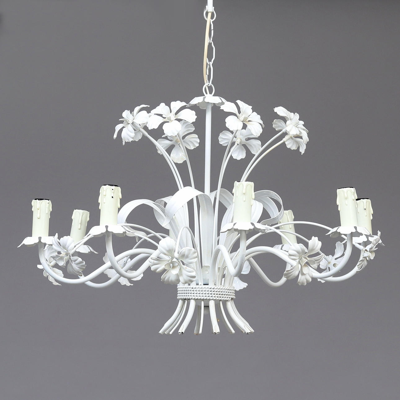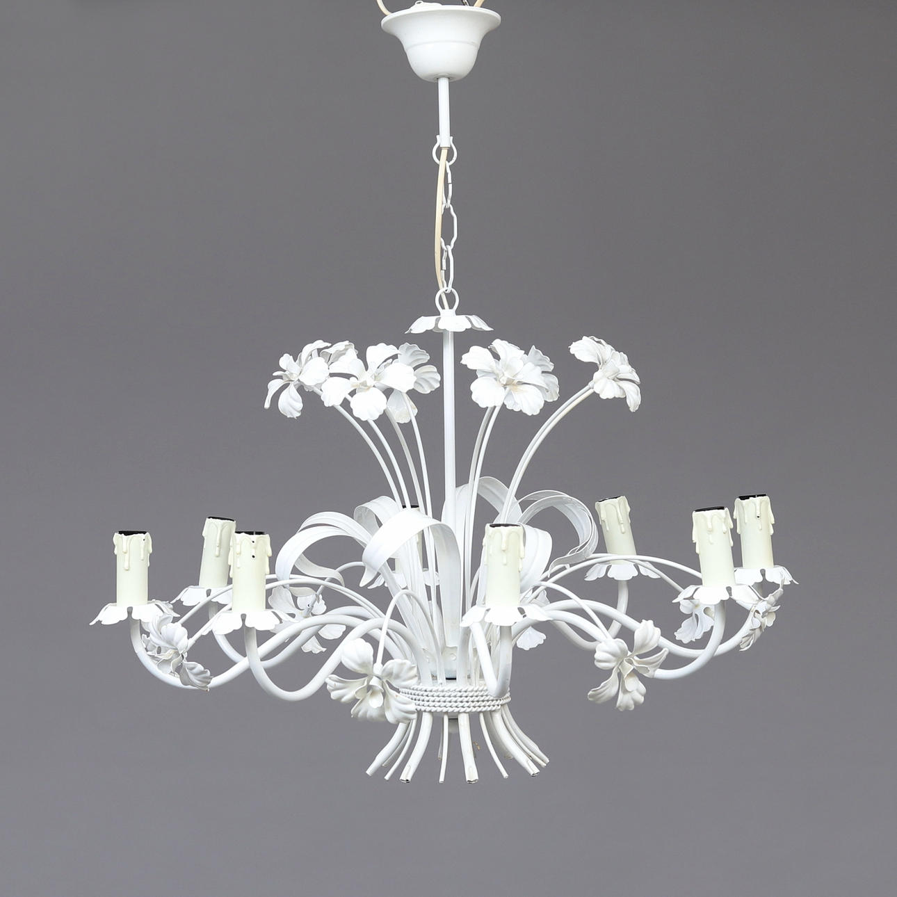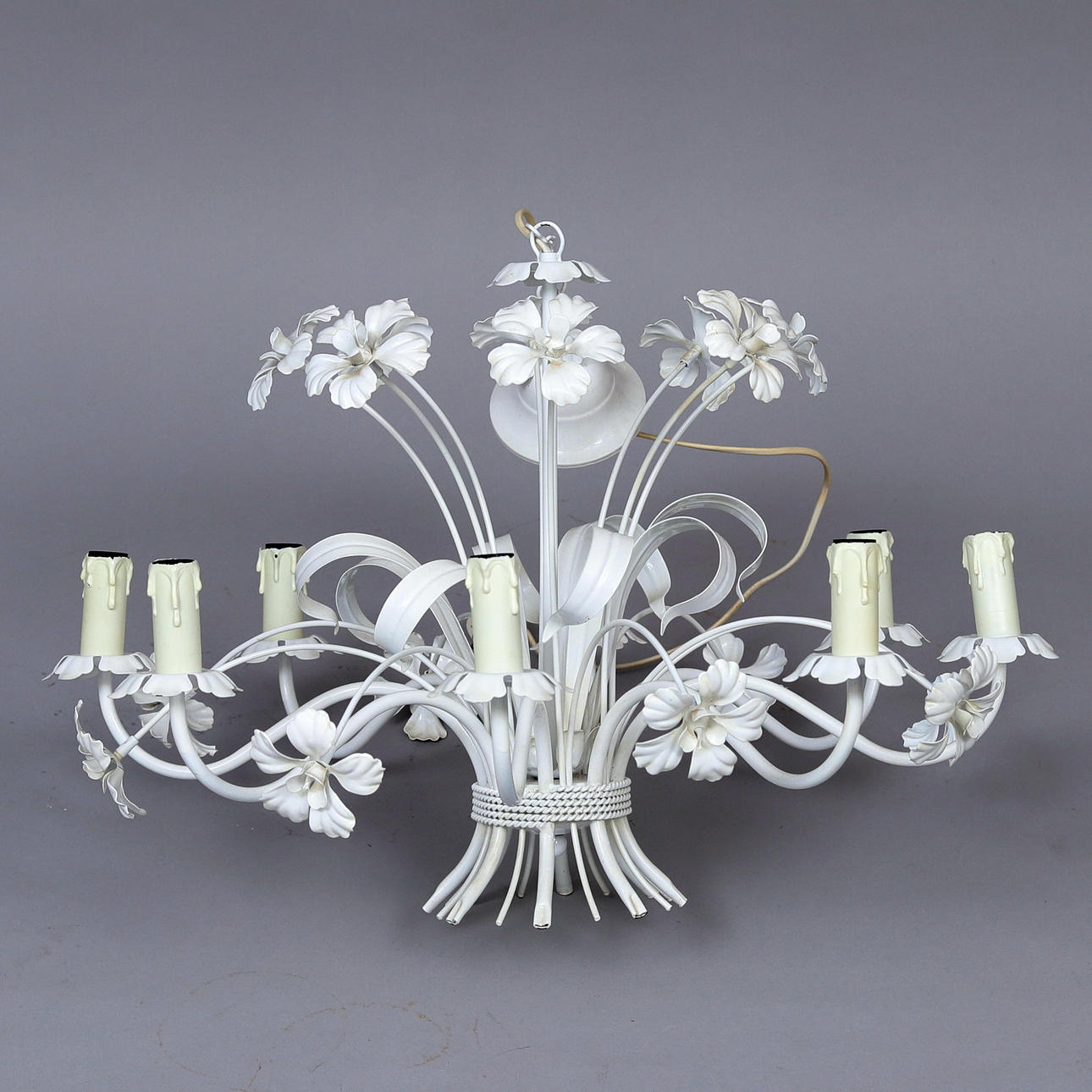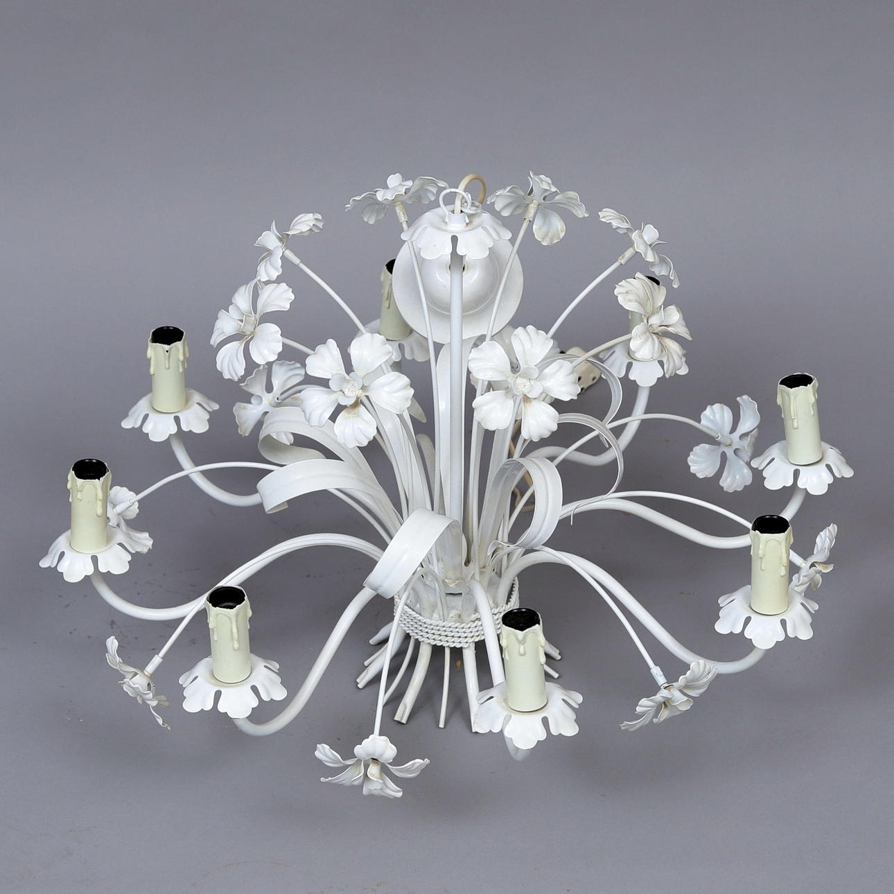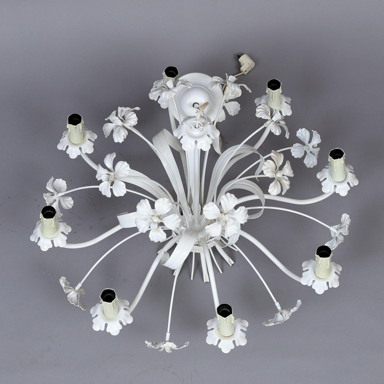 LOFTLAMPE, malet metal, indretning af blomster.