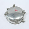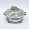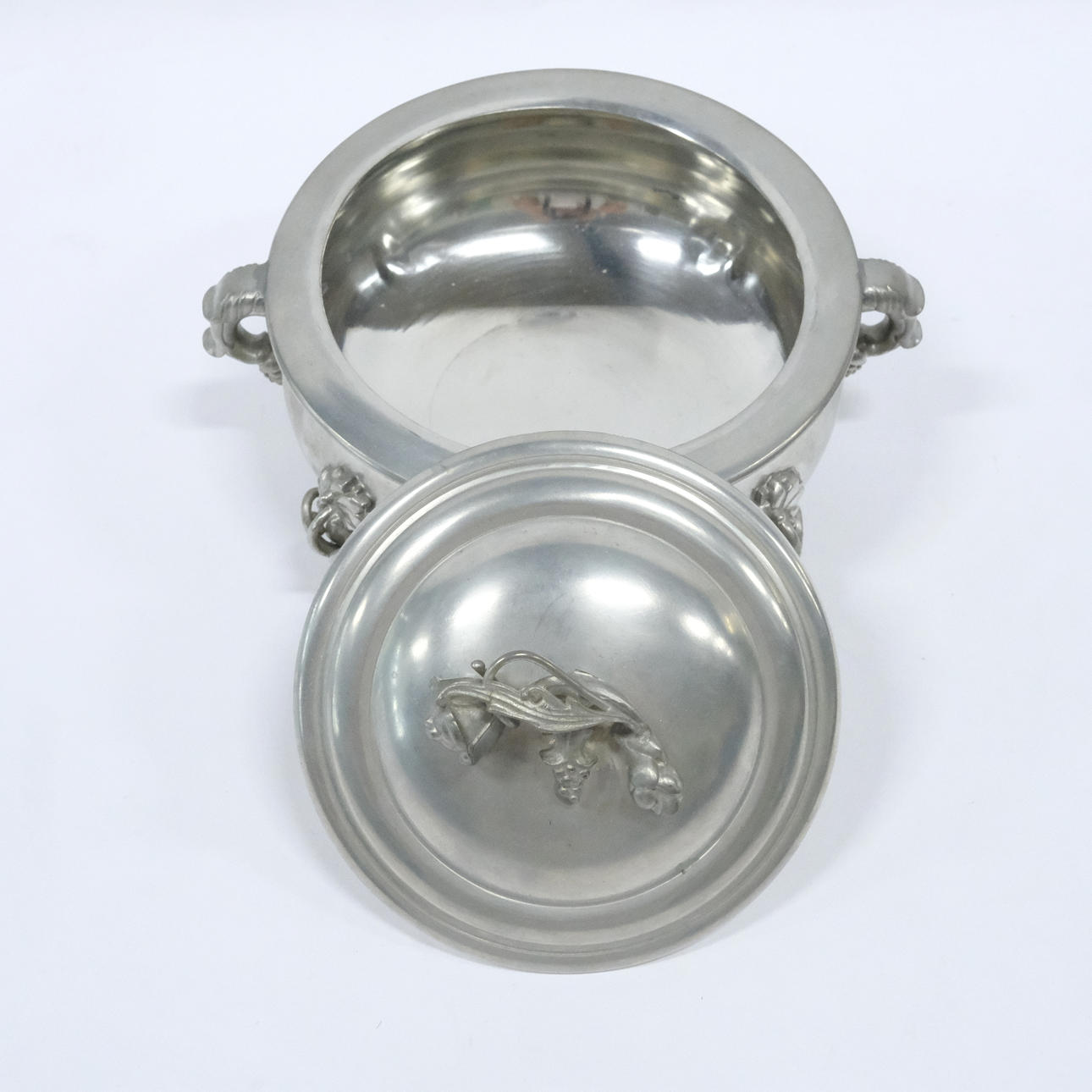 Brugsslitage låg med indgravering på indersiden, skål med ridser indeni.
